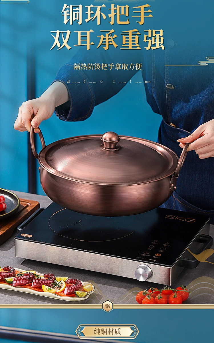 Made of pure copper material and exquisitely crafted by hand, it not only looks beautiful and elegant, but also evenly heats up, making the ingredients more delicious. The pot body is thick and the insulation effect is outstanding, making your hot pot feast stay warm for a long time.