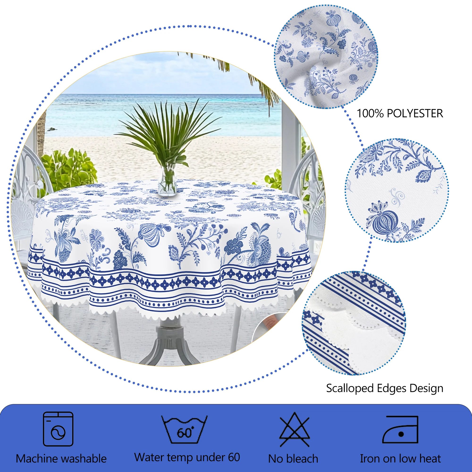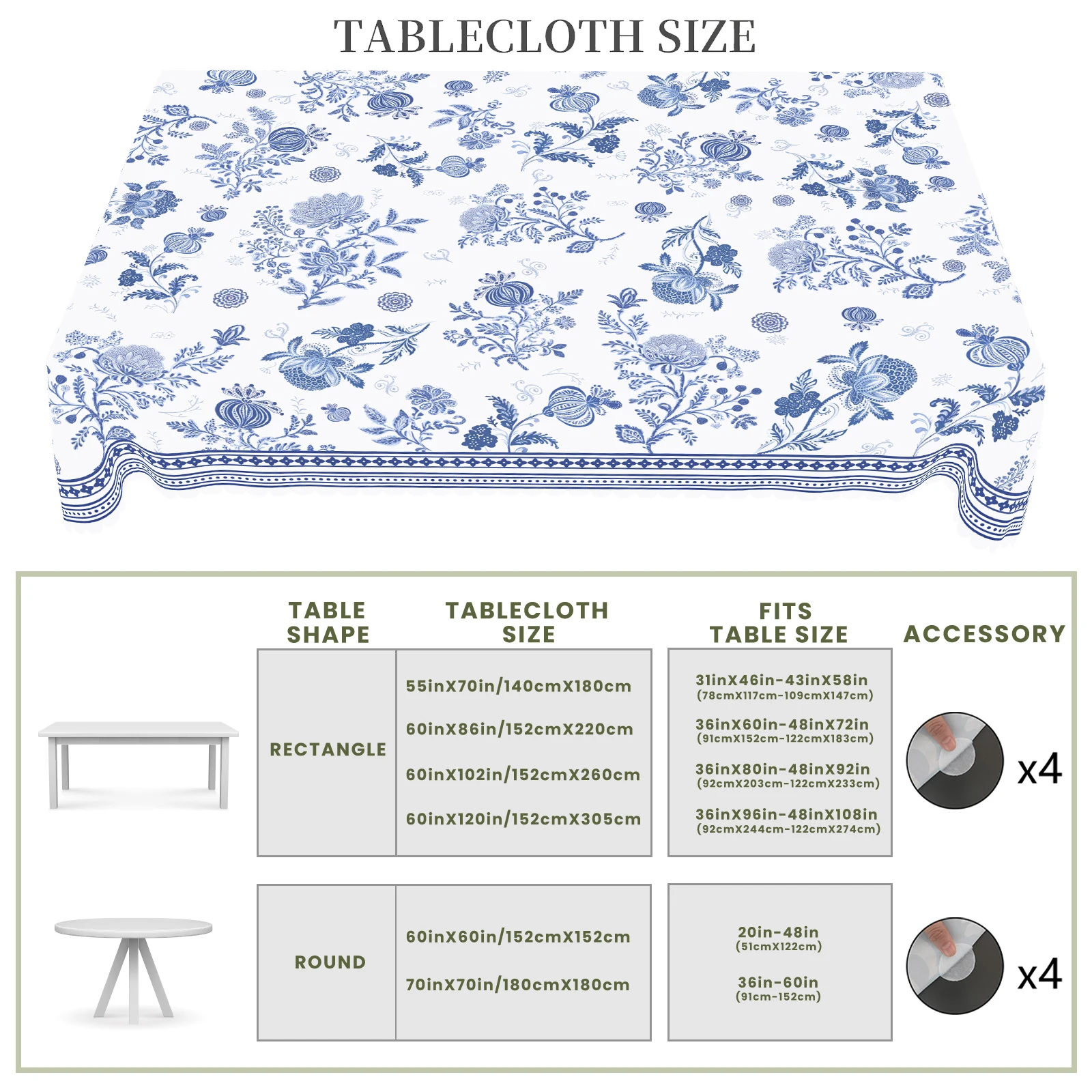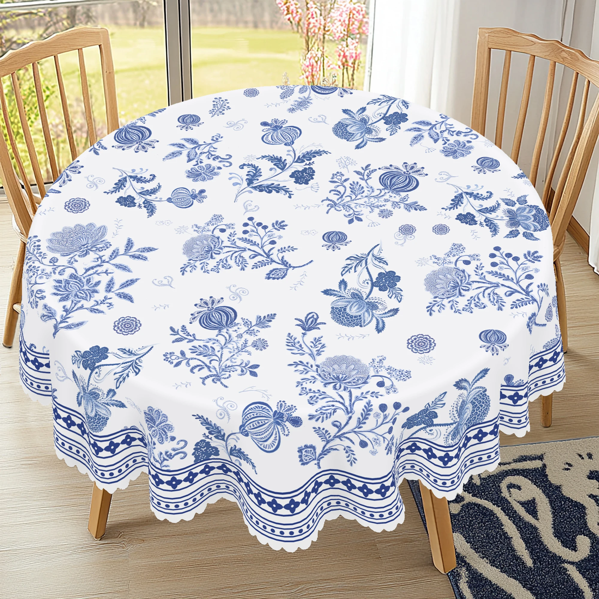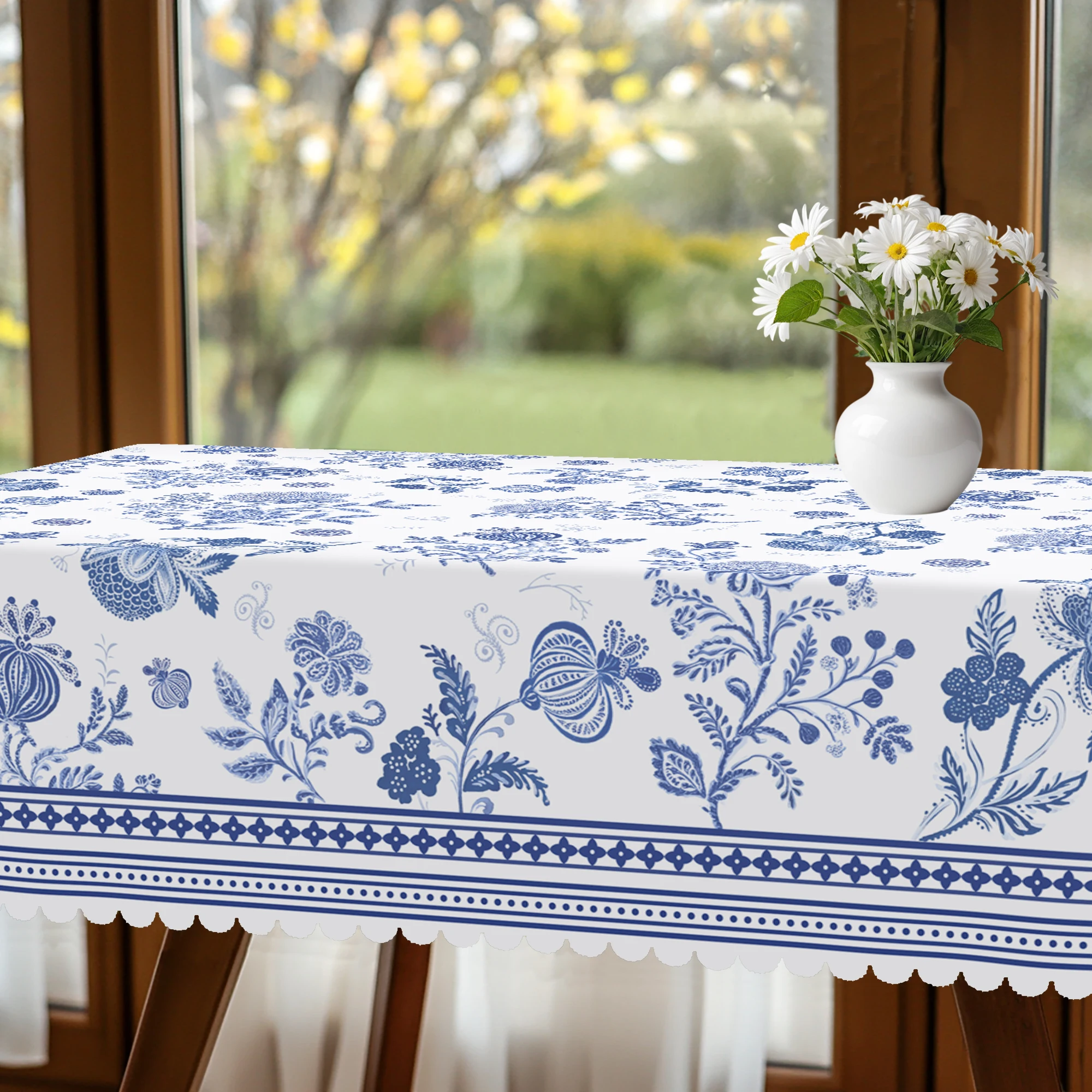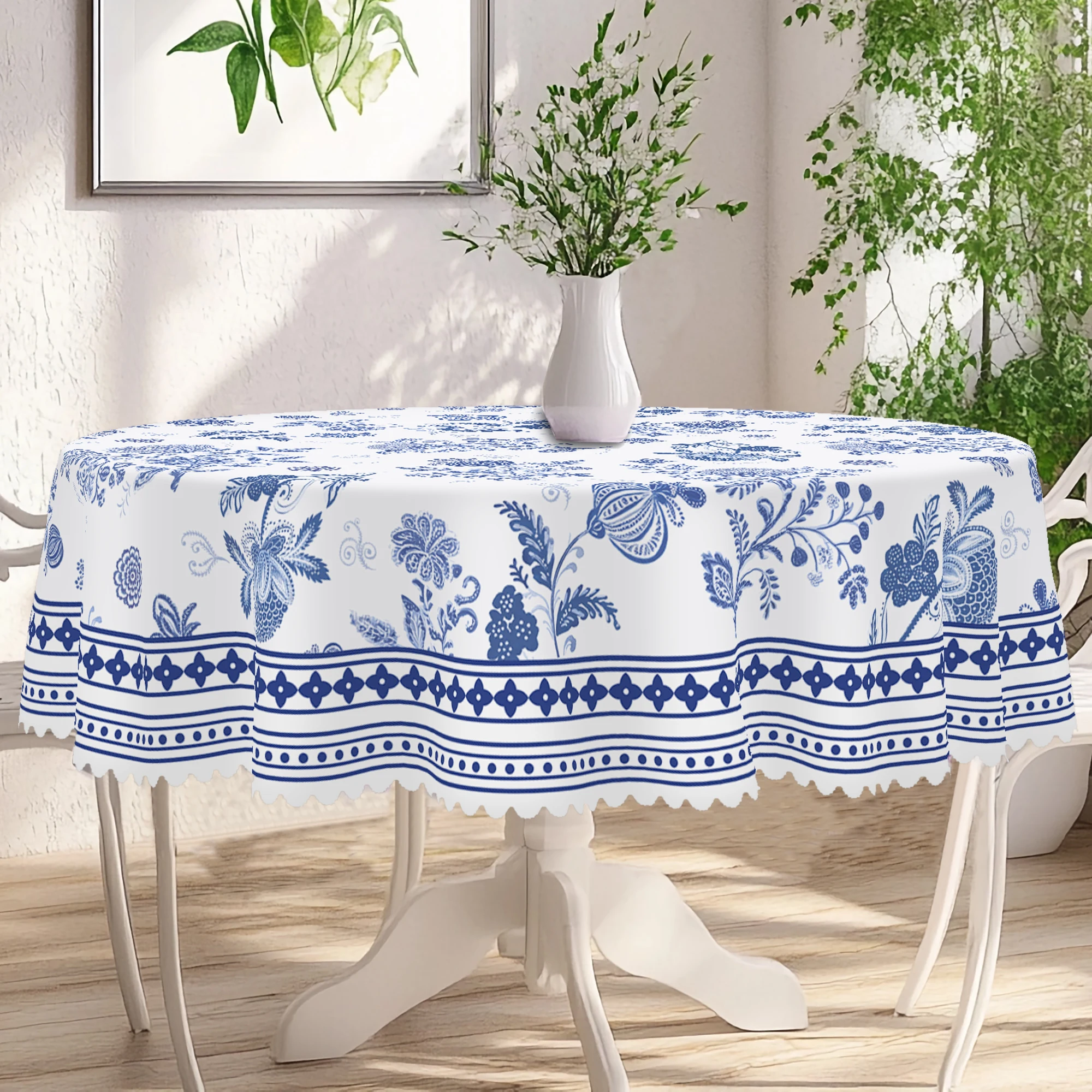1 Piece of Retro Floral Spring and Summer Round and Rectangular Tablecloths, Available in Various Sizes, Blue and White Porcelain Flower Print Pattern Design, French Style, Tablecloths for Home Kitchen, Indoor and Outdoor Use