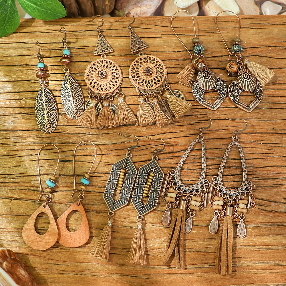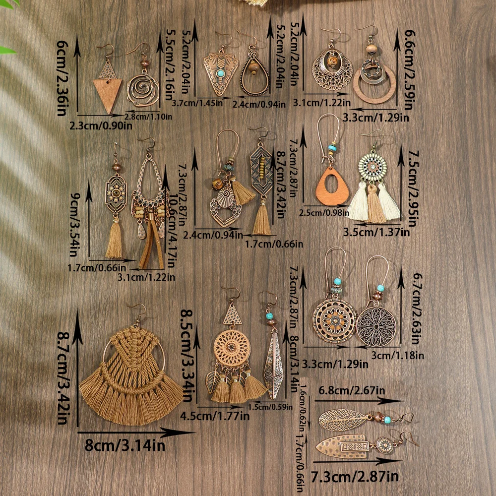 19pairs Boho Earrings Vintage Brown Series Earrings Tassel Woven Statement Geometric Drop Earrings Lightweight Versatile Gifts