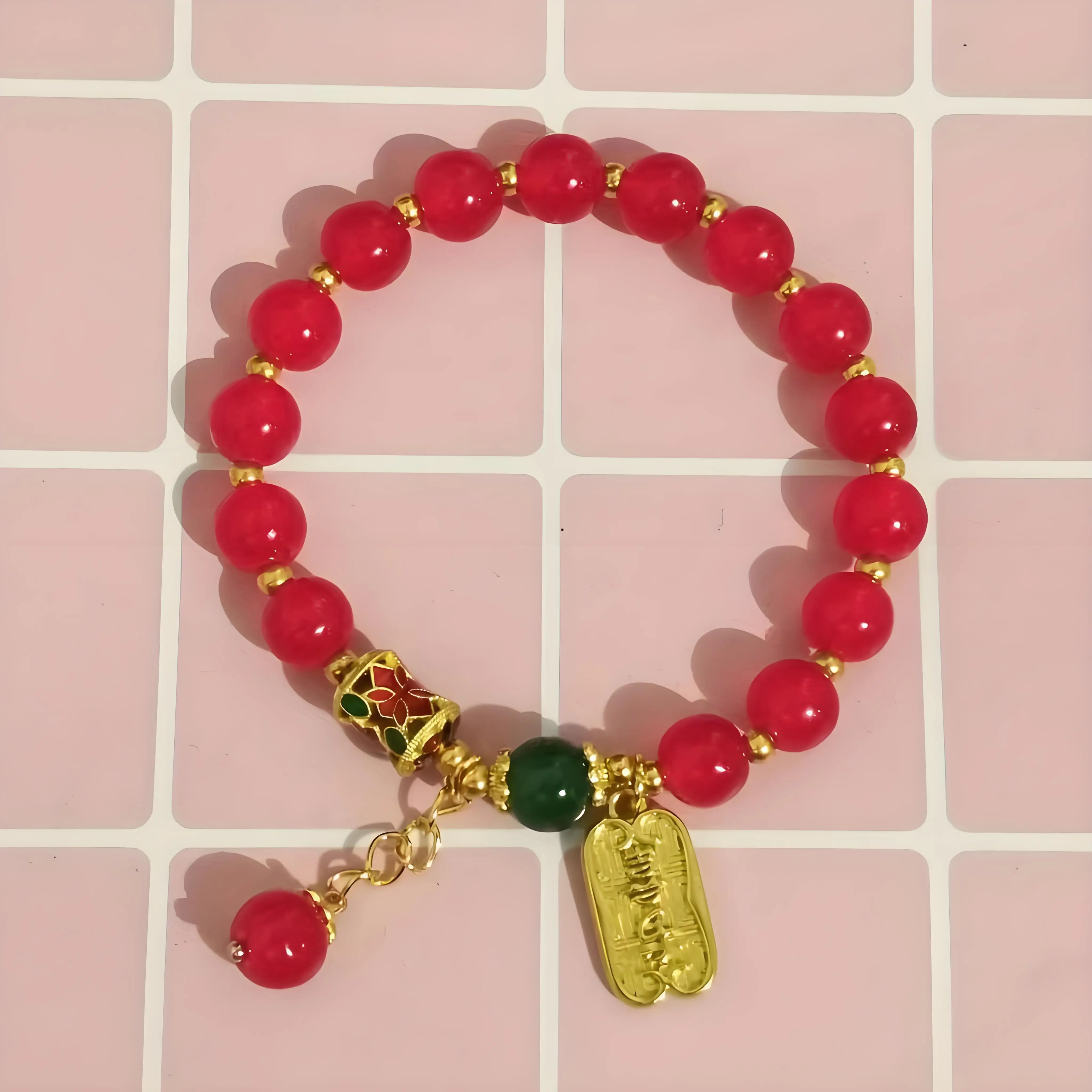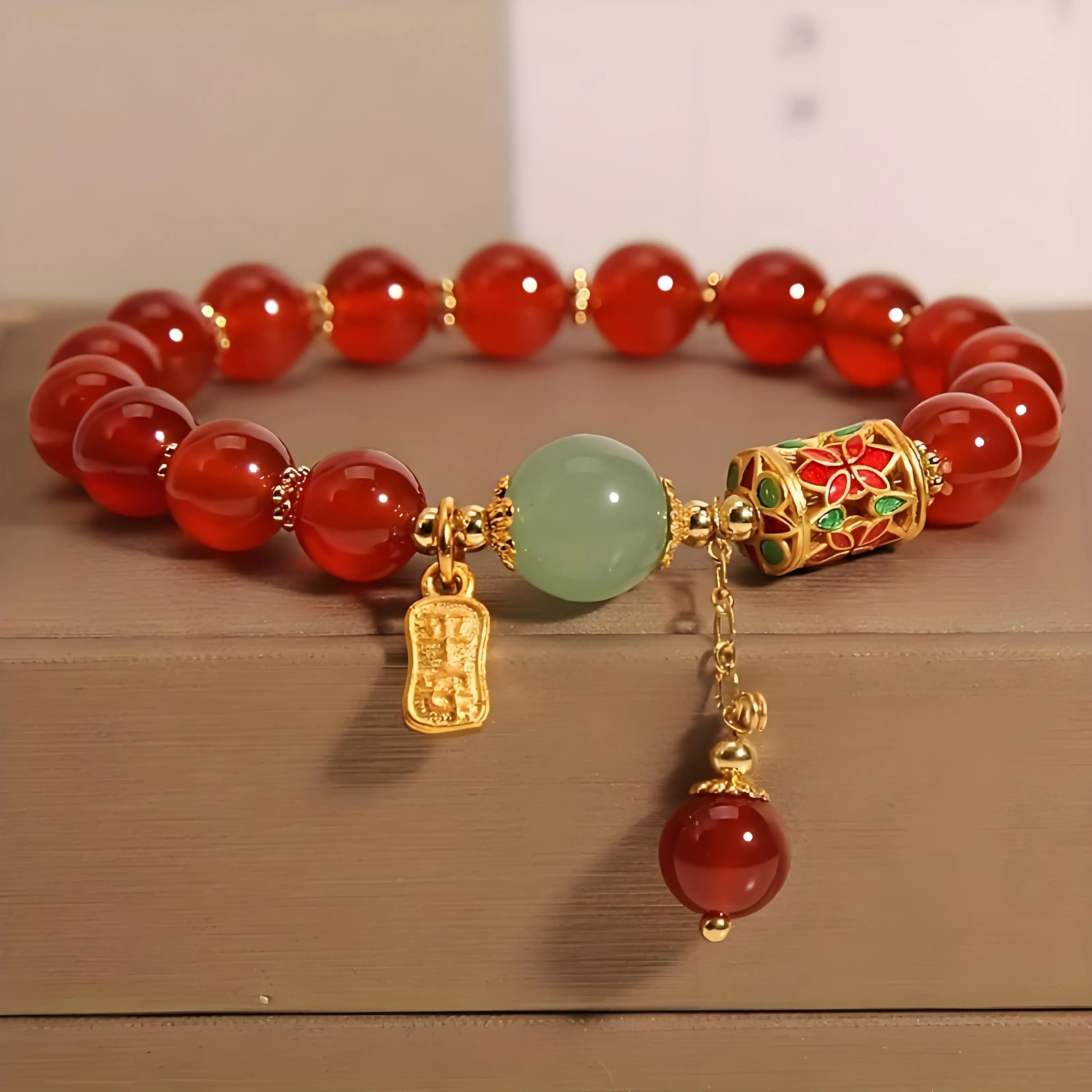 Crafted from high-quality synthetic red agate, this bracelet offers durability and a luxurious feel.