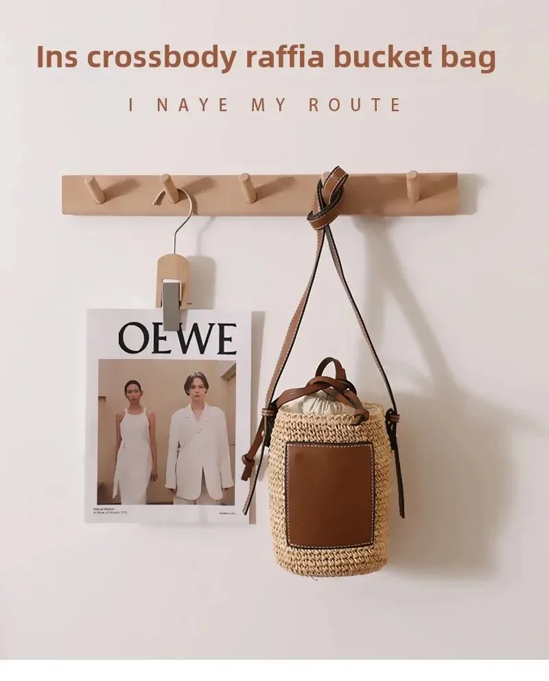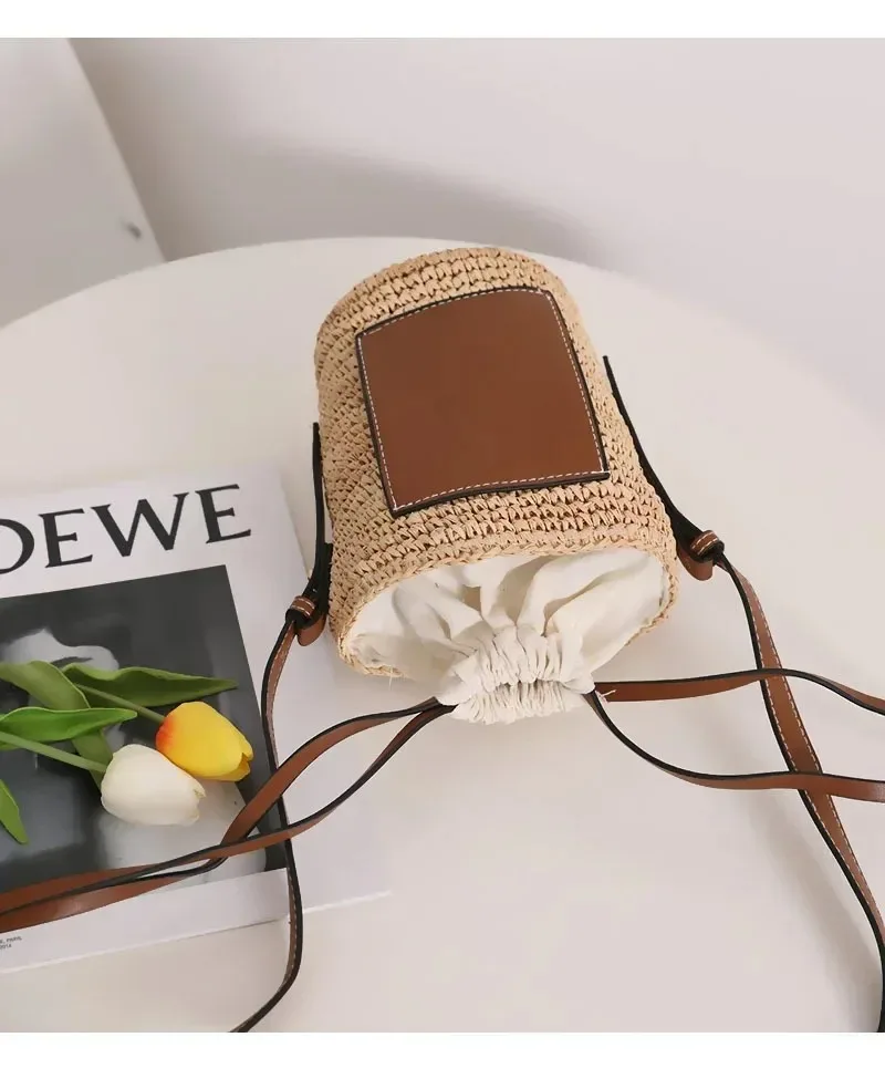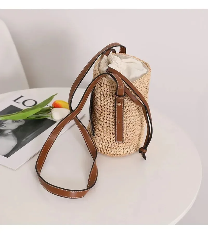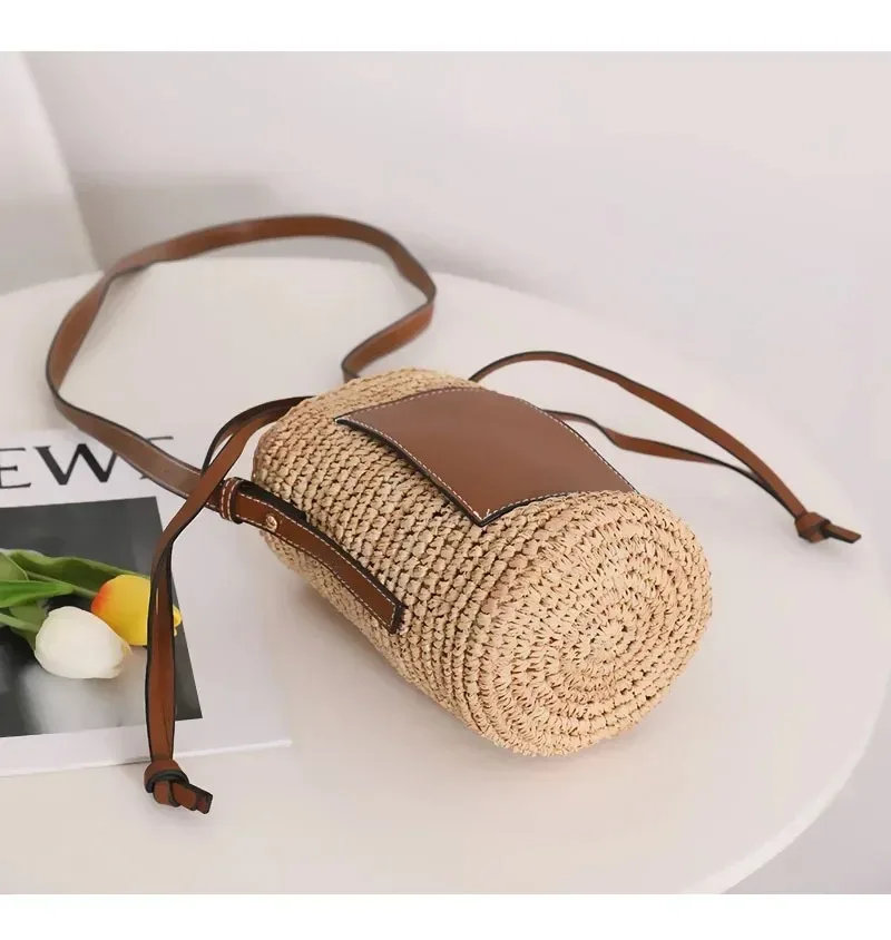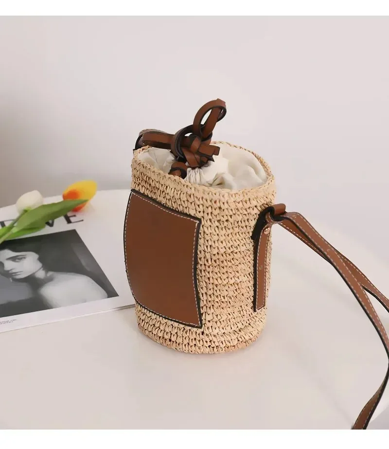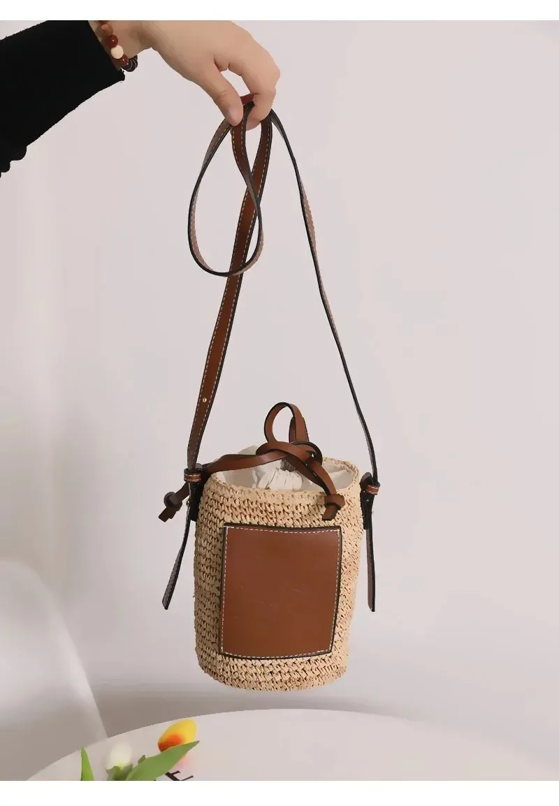 2025 New Raffia Straw Bucket Bag Woven Crossbody Bag for Beach Vacation Versatile Summer Bag Fashionable Country Style