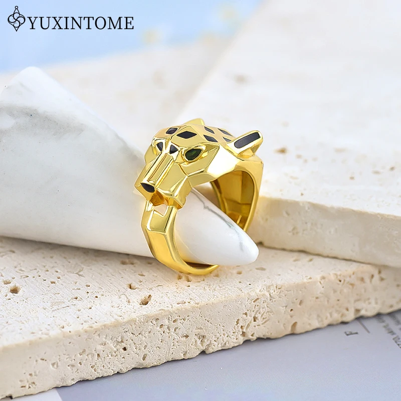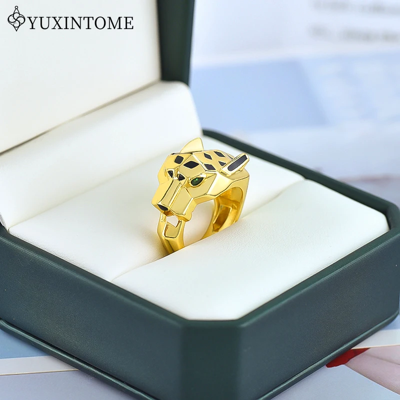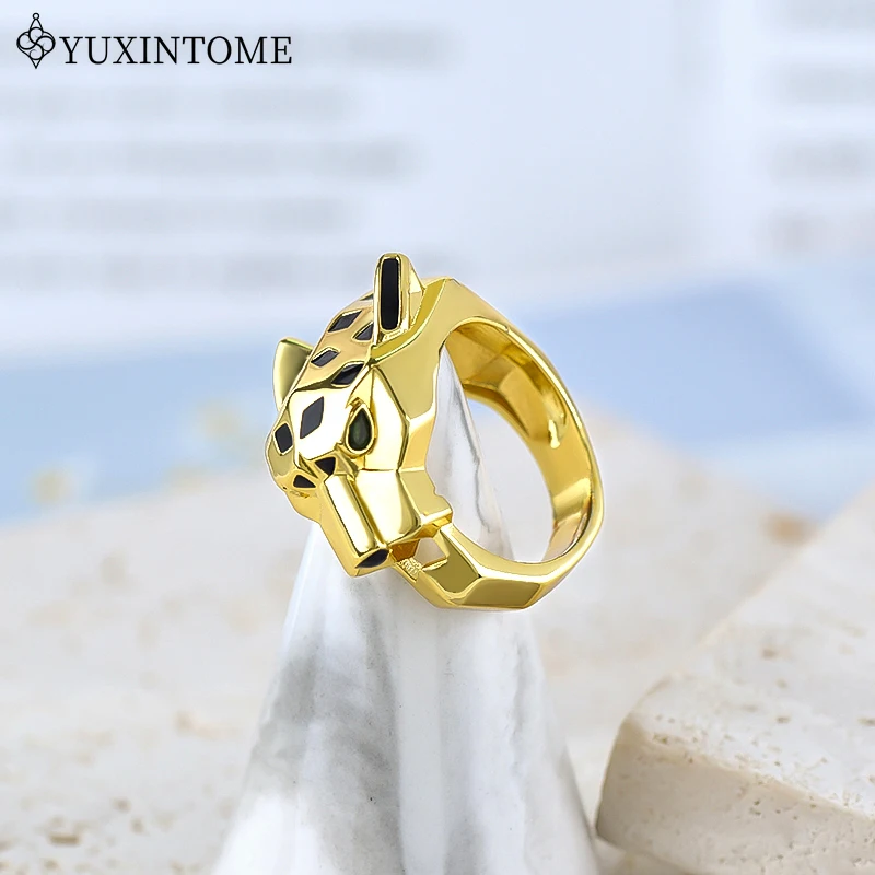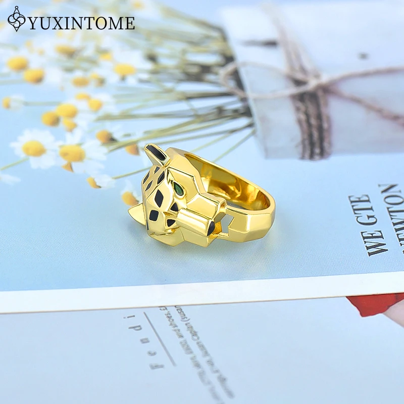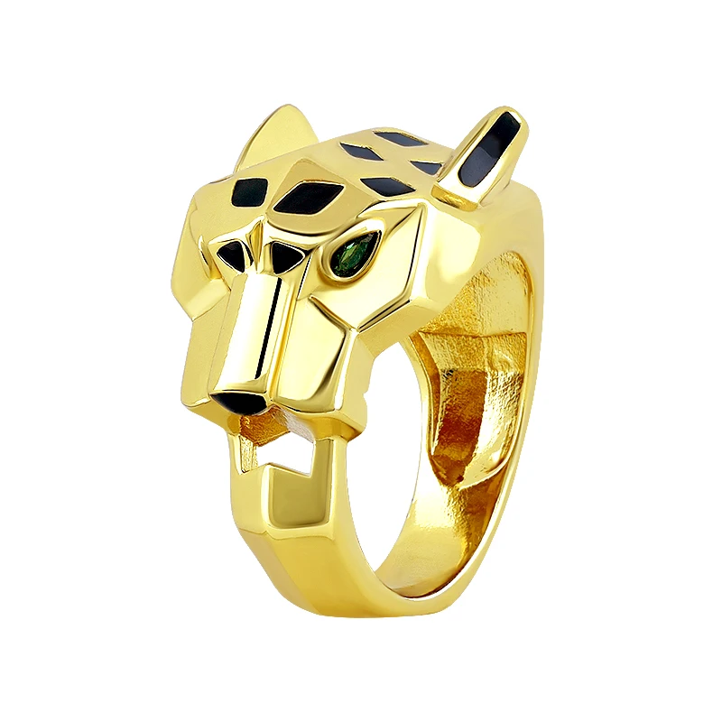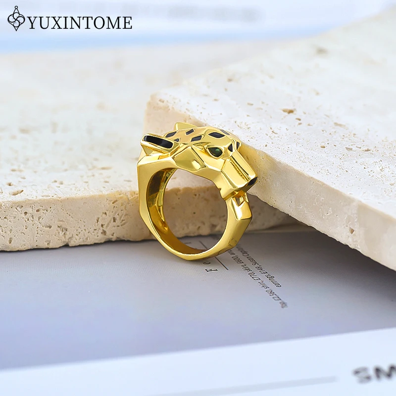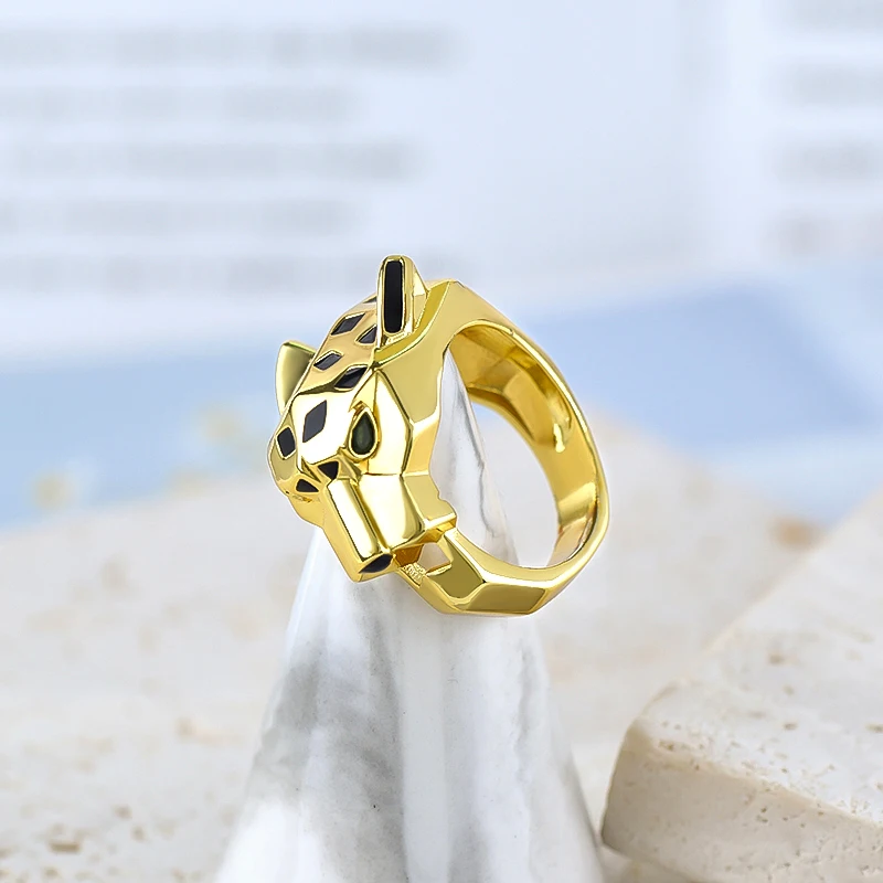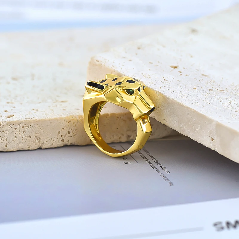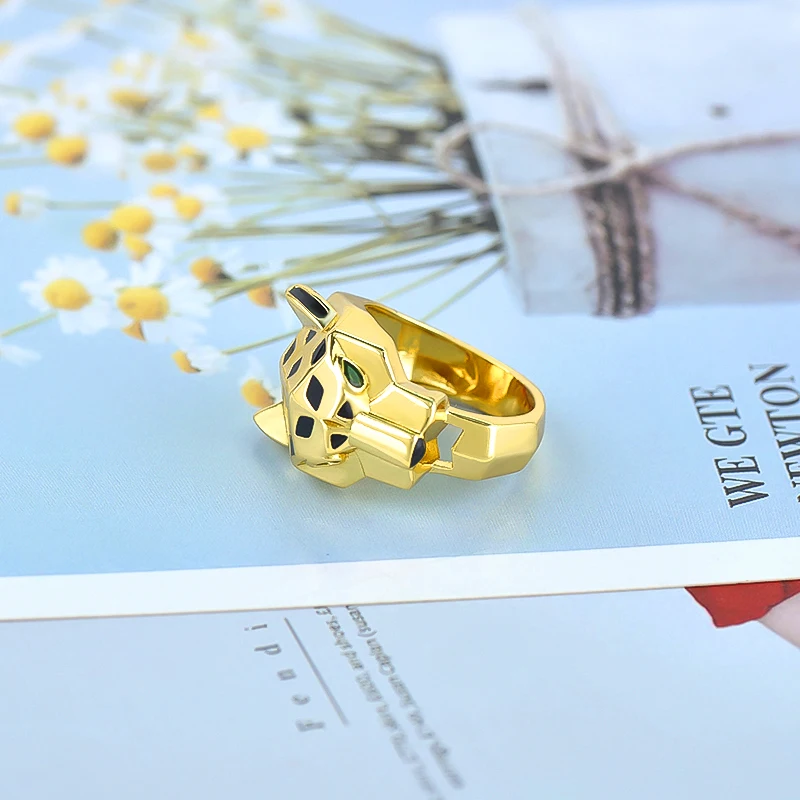24k Gold-plated Leopard Enamel Ring 6/7/8 Size Leopard Head Ring Unisex Personalized Fashion Jewelry Gift