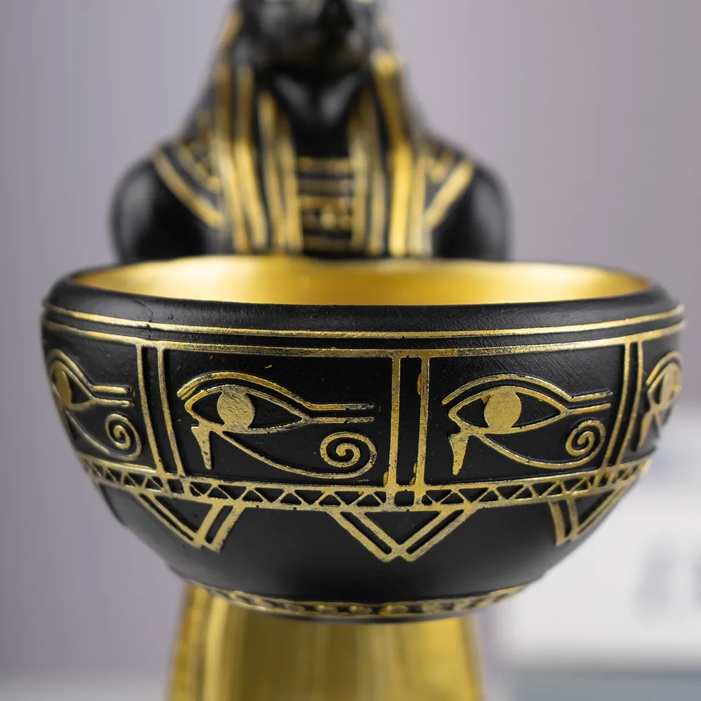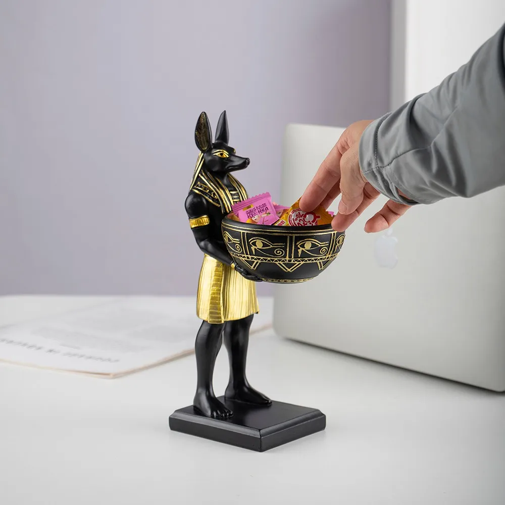 More than just an ornament, the bowl held by Anubis can be used to hold change, keys, or other small items, combining aesthetic appeal with practicality.