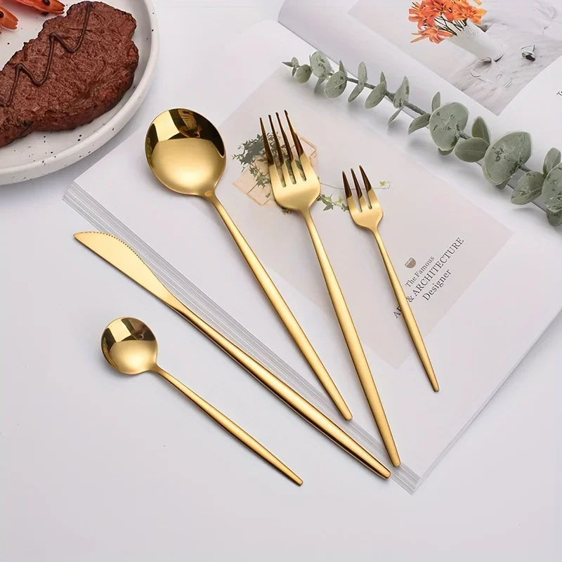60pcs Stainless Steel – Luxe Golden Cutlery Set, Mirror Polished, Dishwasher Safe, Includes Knives, Forks & Spoons in Gift Box,