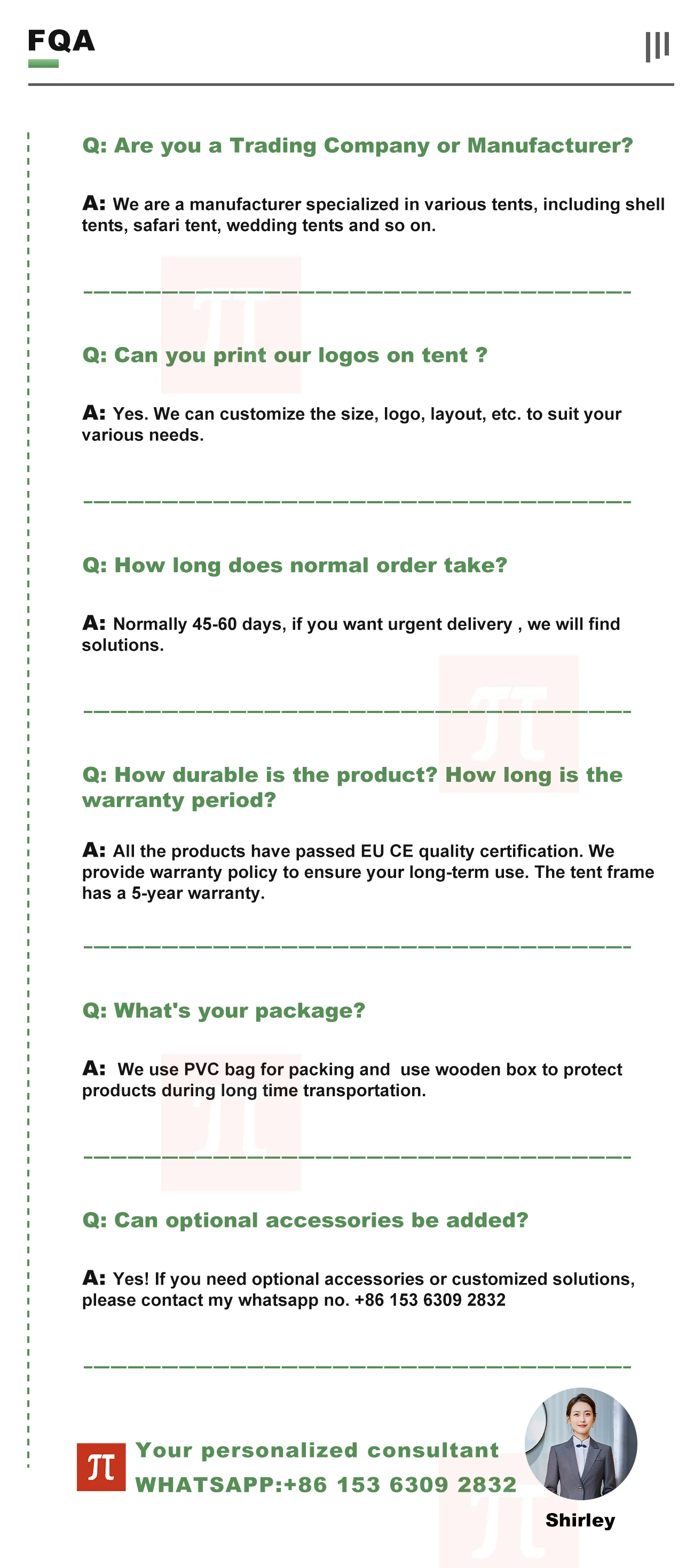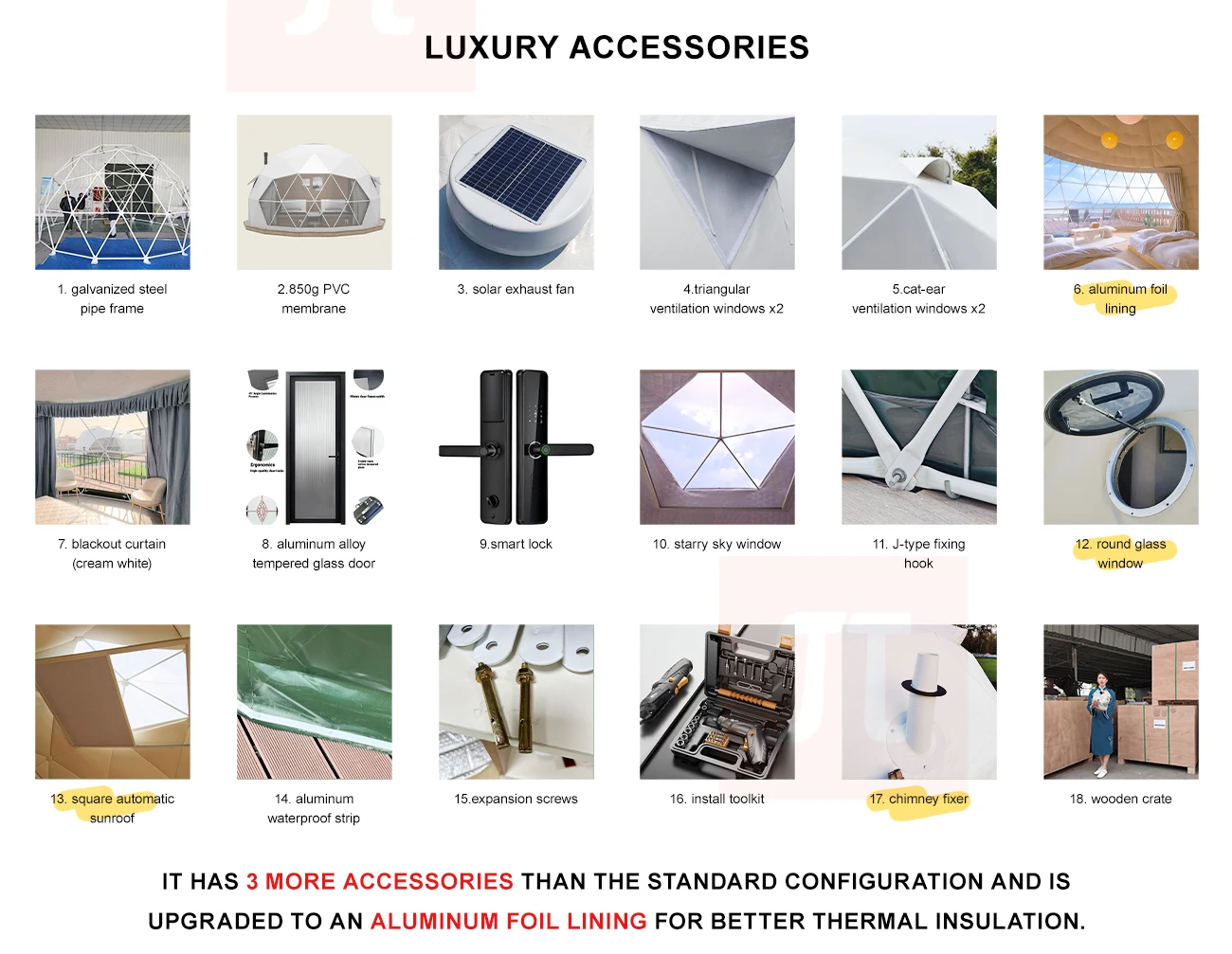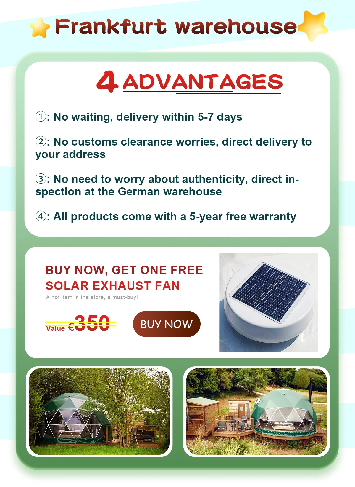 Accessories included:outer tarpaulin, steel frame, thermal insulation inner cotton, glass door, electronic password lock, air window, ventilation window, solar fan, installation tools, etc.