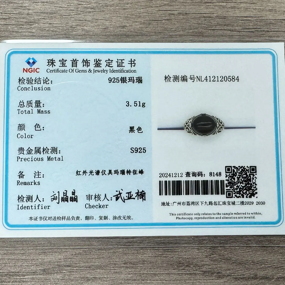 Material: 925 Sterling Silver + Natural Black Onyx (10x12mm oval)