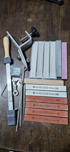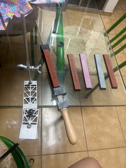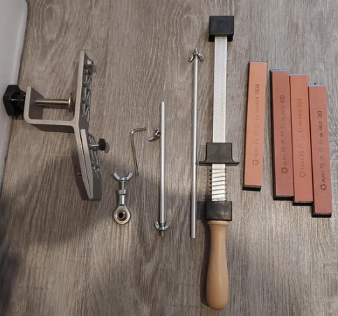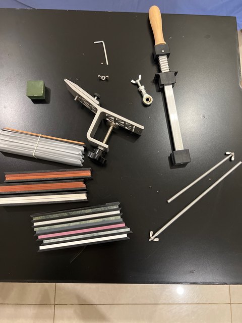 Exactly as described in the ad. Easy to attach to the table with the Hulk attached. Easy to give the angle for sharpening. Unnecessary to use that digital angle device. The stones are quite thin. I advise choosing the number smaller 180 400, the highest of 1000. 2000 are for sharpening scalpels. For our barbecue knives, only the first two stones are already easy. Hugs to all Marco Aurélio de Botucatu – São Paulo- Brasil
