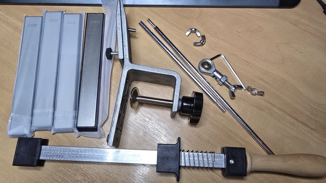 The order arrived on time, well packed safe and sound. Now about the device itself. There are pros and cons. Of the advantages, a good fixation of the knife, the idea of fixing the bar is successful but requires revision, the bar is poorly held, or the spring should be more powerful or the threaded lock. Raise questions about the aluminum studs, especially on the bar holder. And very lack of marking the angle of sharpening. When adapted to the unit as a whole, all the shortcomings were leveled