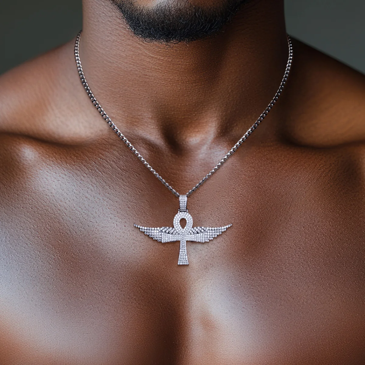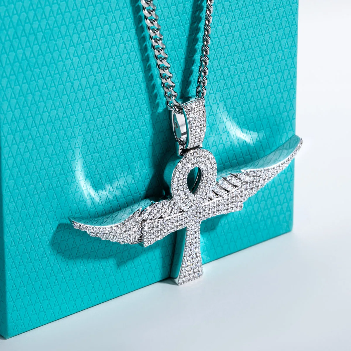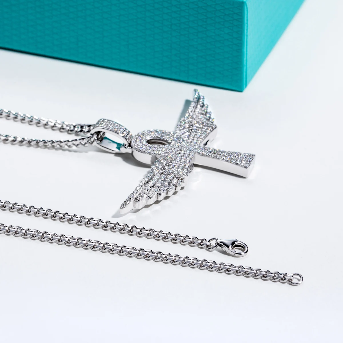 AnuJewel Moissanite Angel Wings Necklace Hip Hop 925 Sterling Silver Bling Pendant New Age 60cm Chain Jewelry for Women&Men