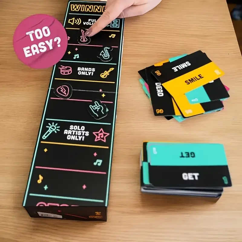 Catch the Mic – 2-10 Players, 250 Lyrics Cards with Pink & Black Microphone Design, Fun Karaoke Party Game for Family Game Night