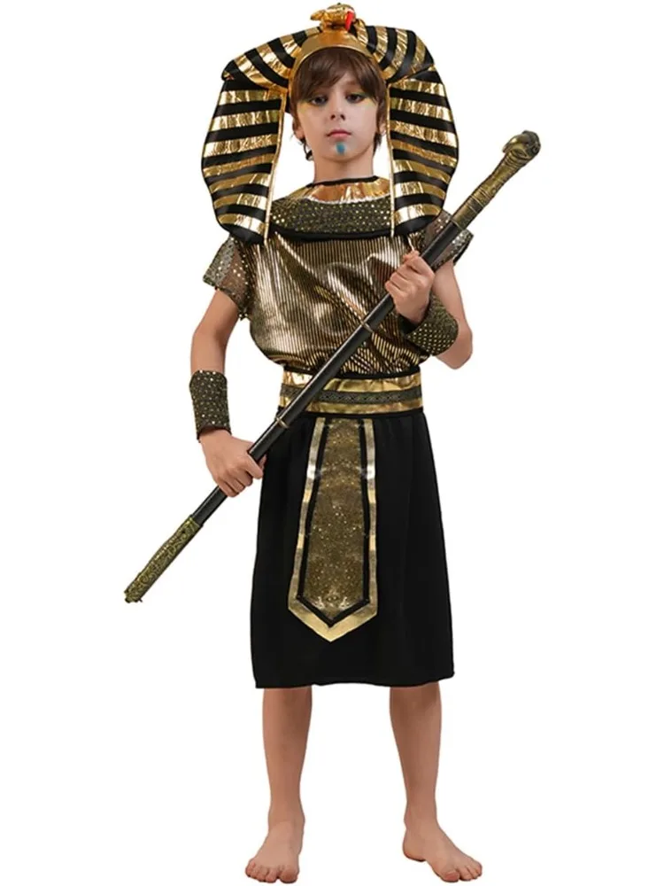 Children Halloween Egyptian Traditional Costumes Fantasia Boys Kids The Pharaoh Of Egypt Cosplay Carnival Masquerade Dress