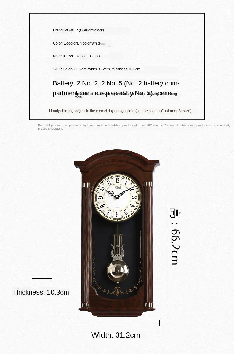 Lovely, it is rigid plastic the pendulum moves very well needs 4 batteries. I fell in love😍😍😍😍😍