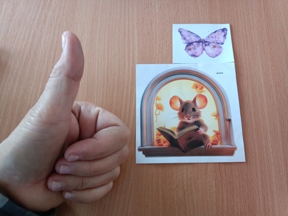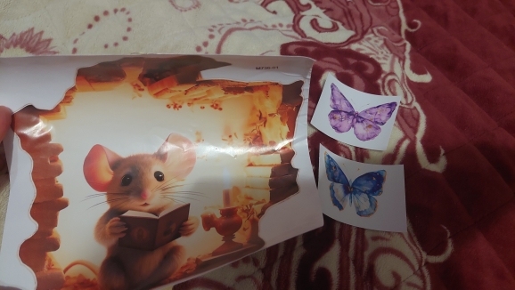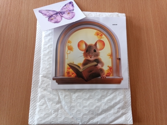 The sticker came crumpled, but there was a small bonus, a small owl sticker as a gift.