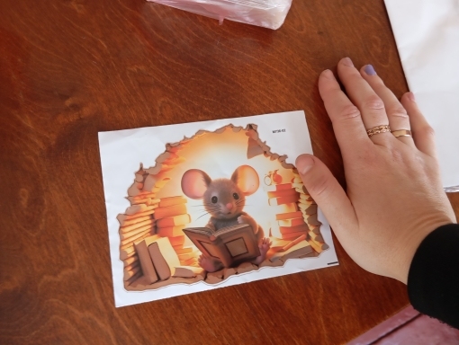 Shwidka shipping to Ukraine. Garna sticker, the bear is cute. Rosmir such, yak said at the inventory. Easy to stick, pokey to trim. Glued at the bottom of the non-practical Kamina at the bibliottsi. Duge cute Viglyadaa.