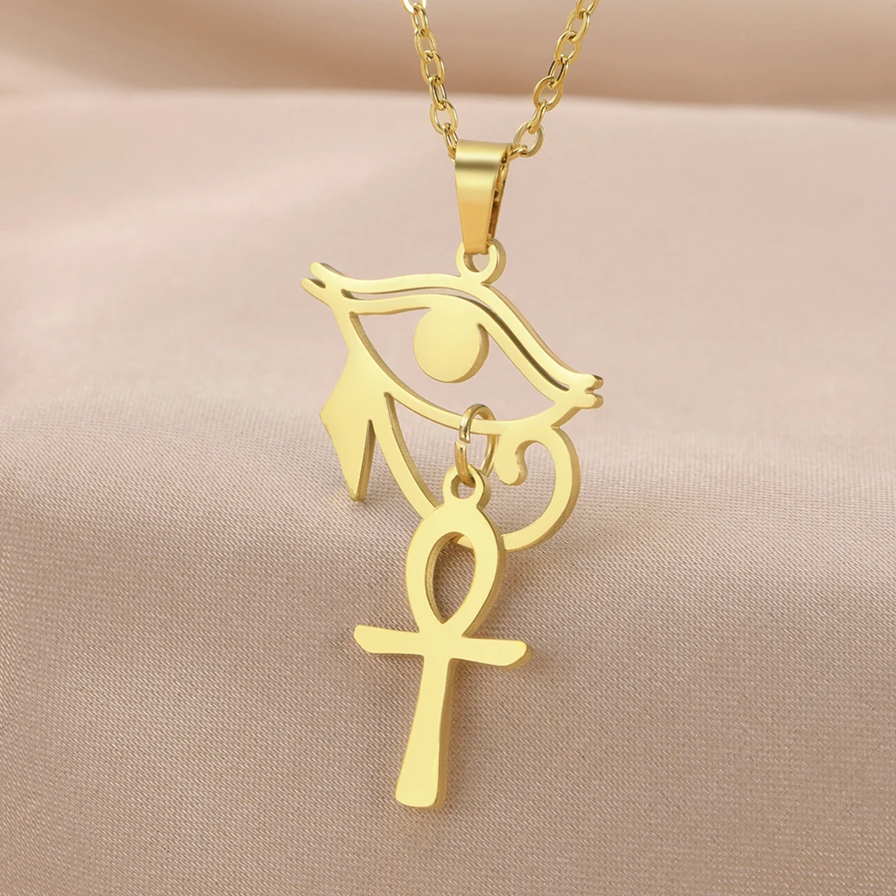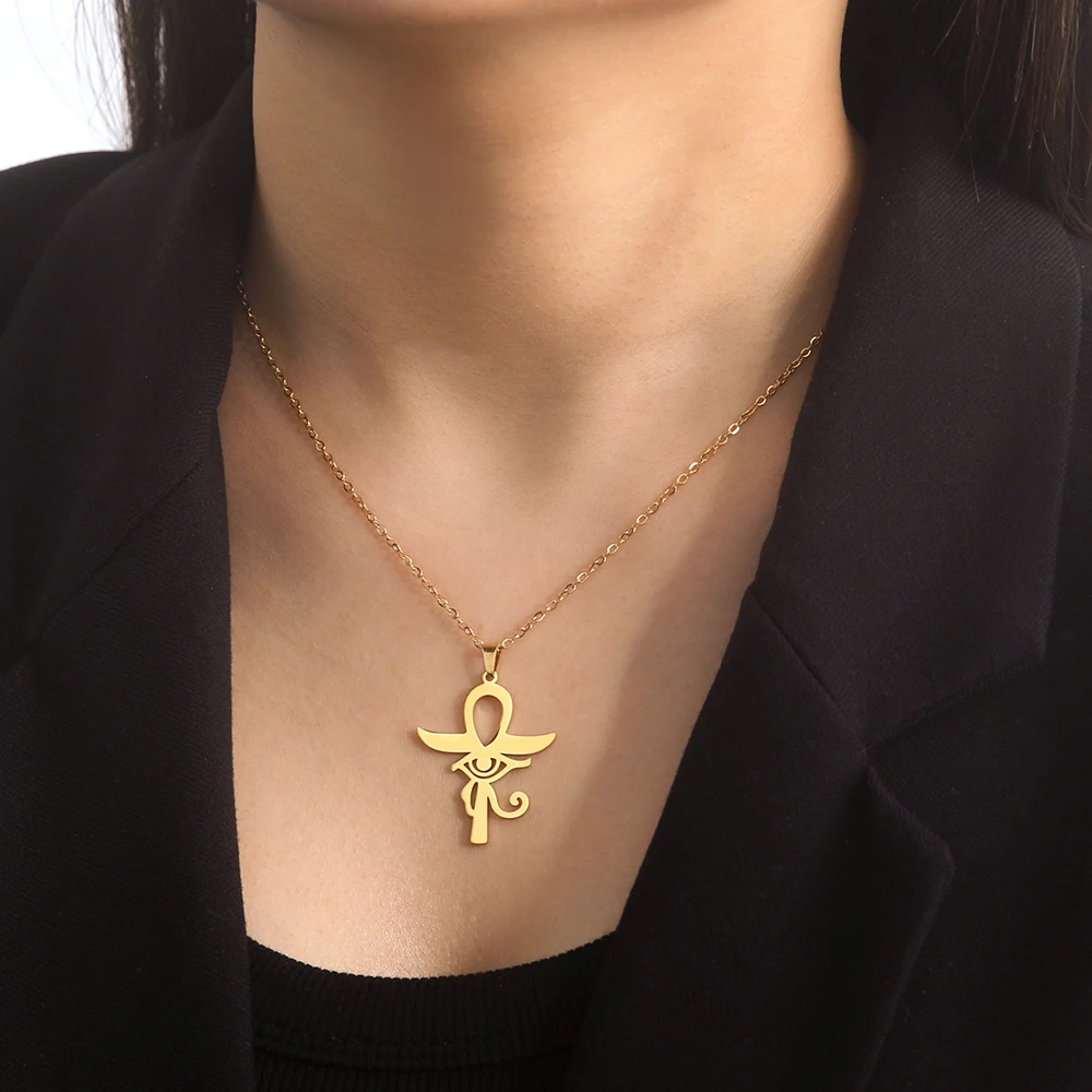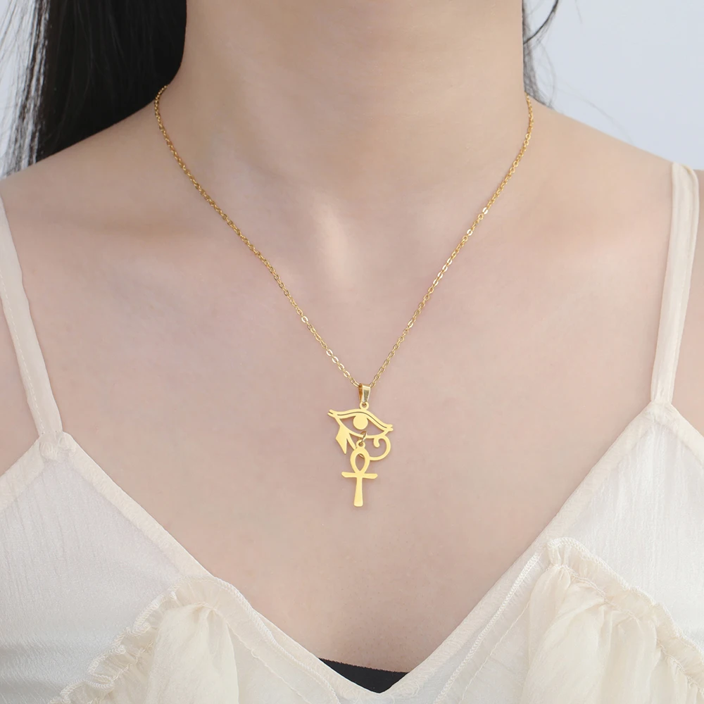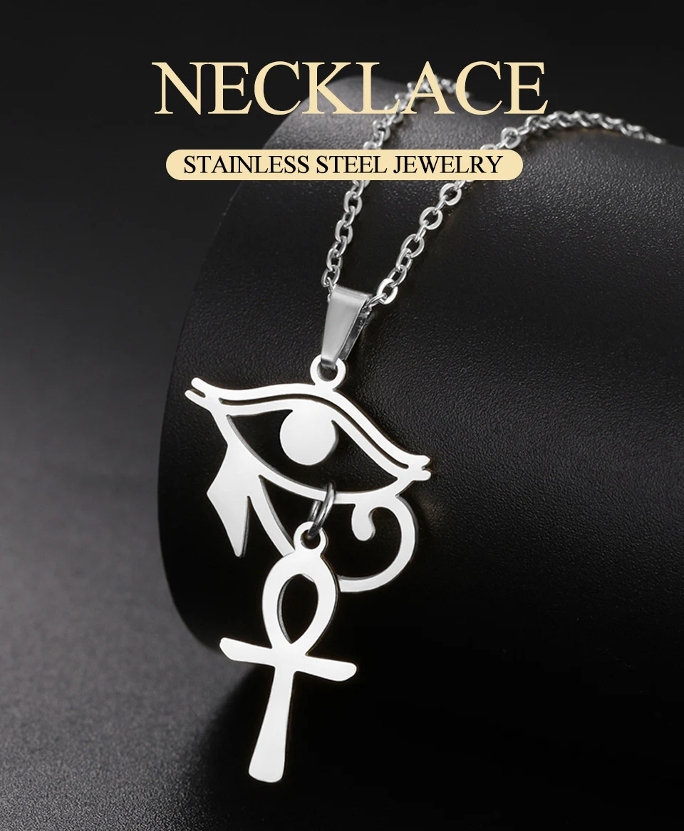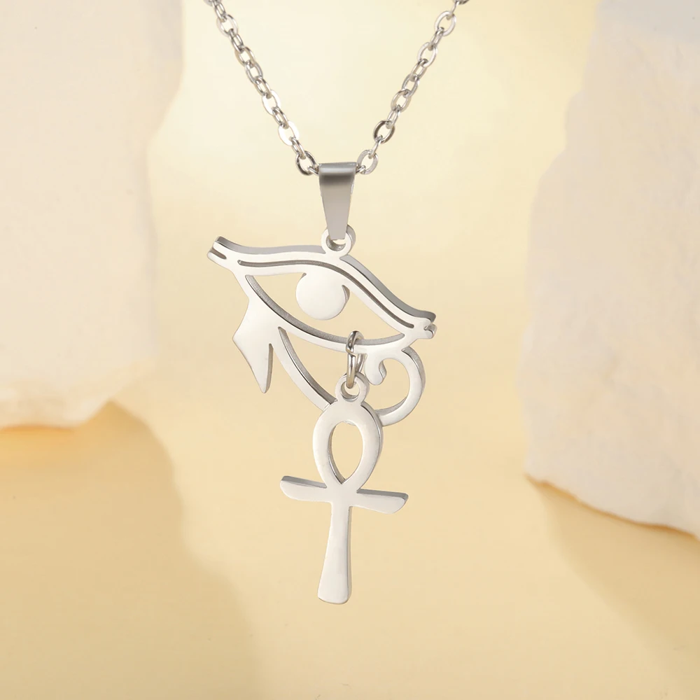 Dawapara Eye of Horus with Ankh Cross Necklace Key of Life Protection Ancient Egypt Jewelry Stainless Steel Necklace