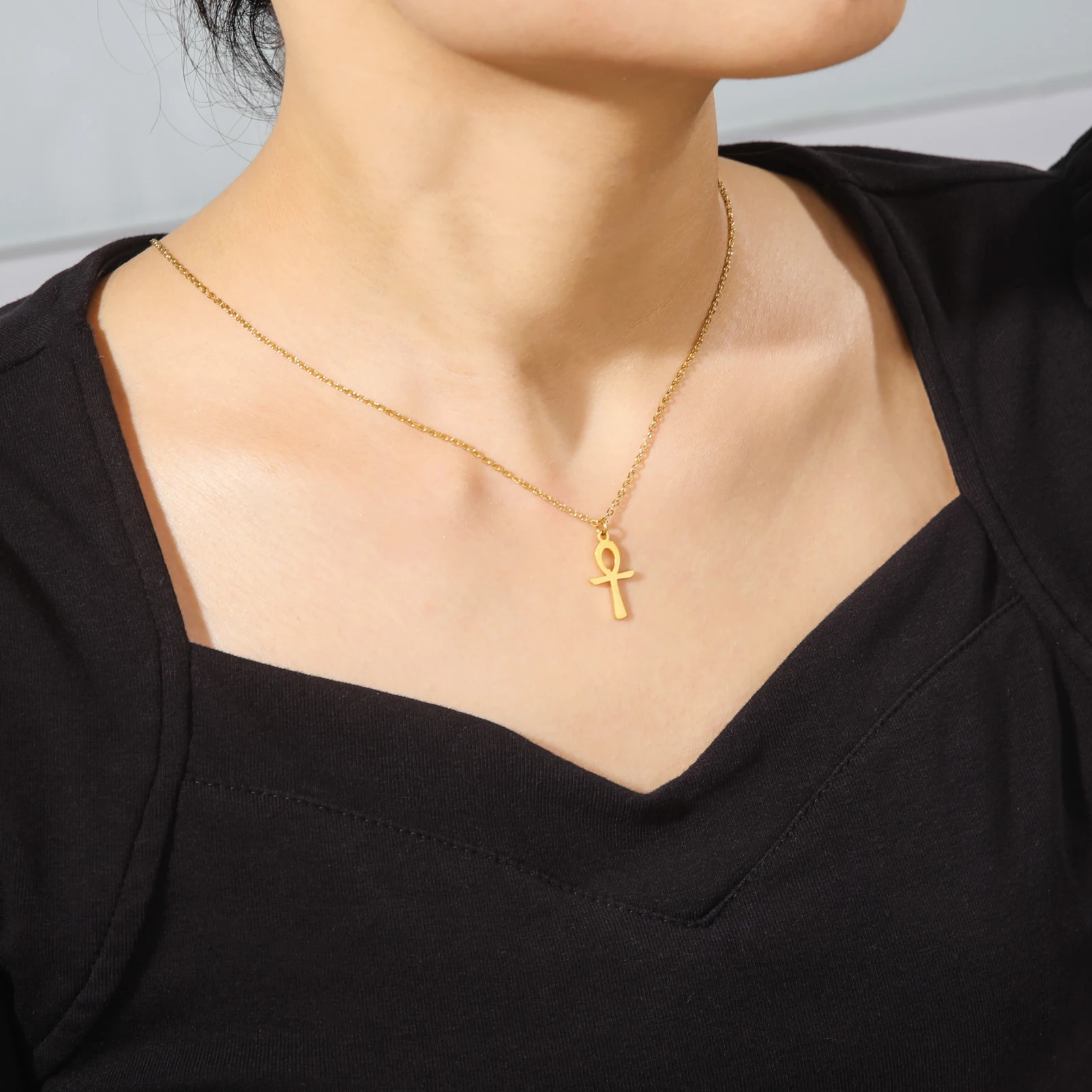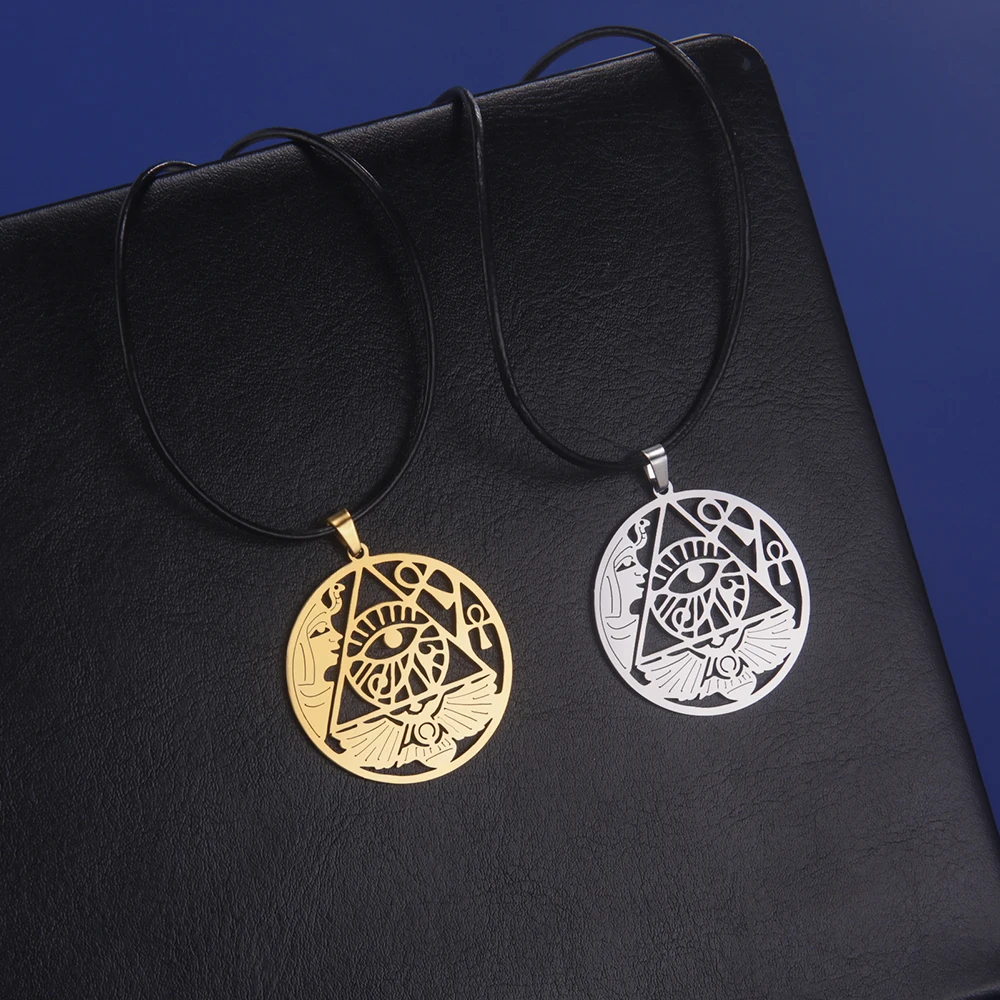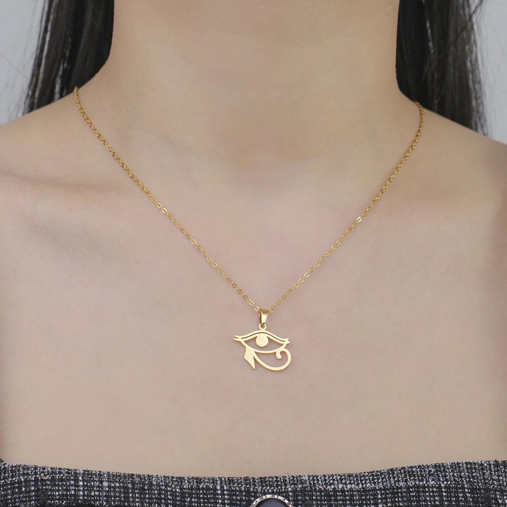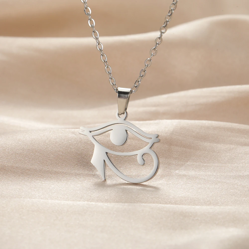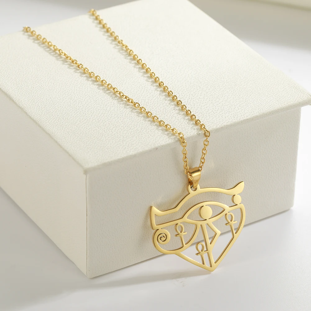 Dawapara Eye of Horus with Ankh Cross Necklace Key of Life Protection Ancient Egypt Jewelry Stainless Steel Necklace