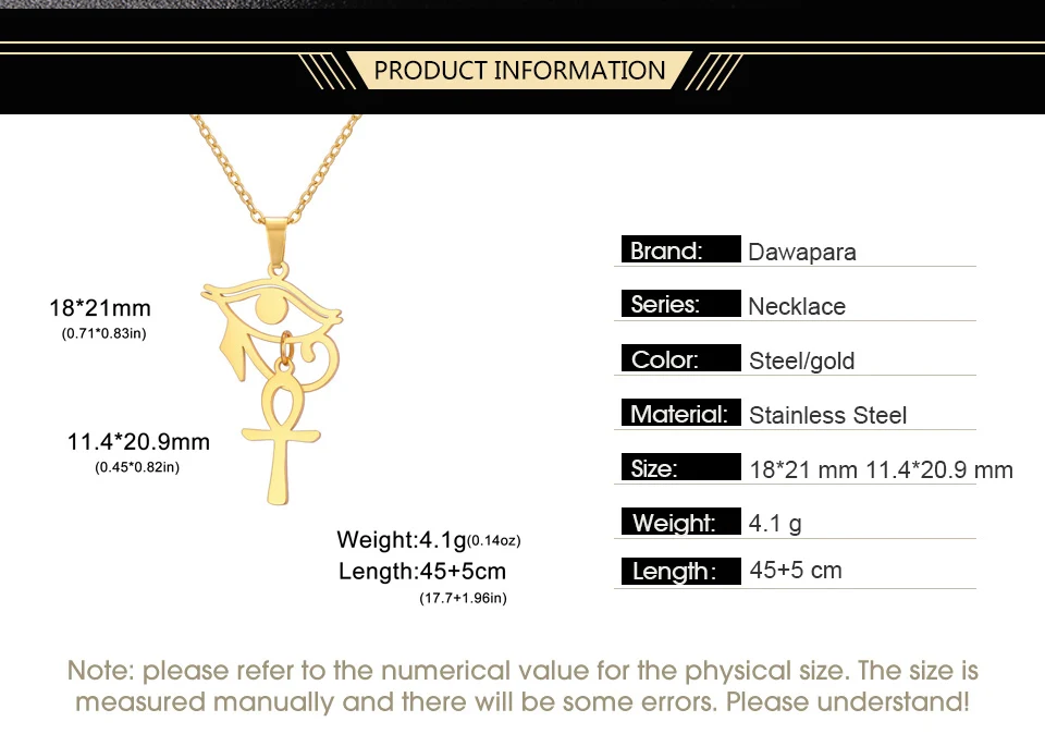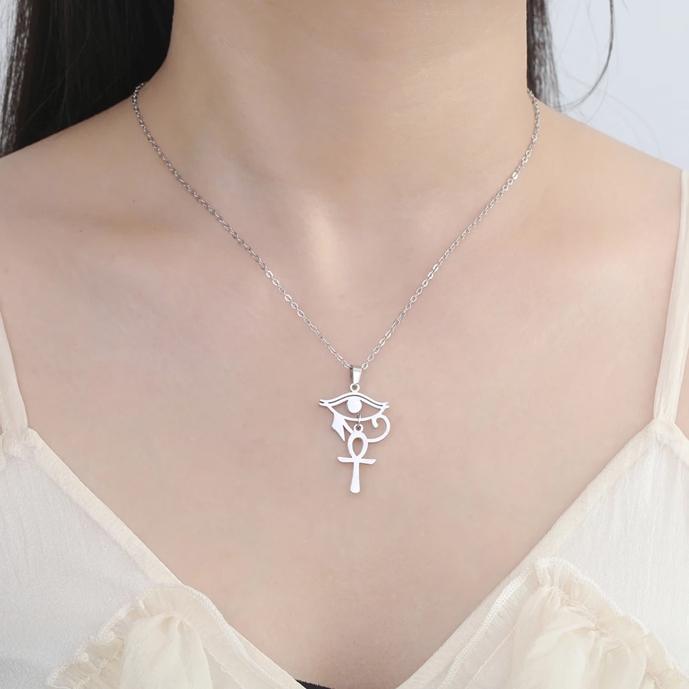 Be the first to review “Dawapara Eye of Horus with Ankh Cross Necklace Key of Life Protection Ancient Egypt Jewelry Stainless Steel Necklace”
