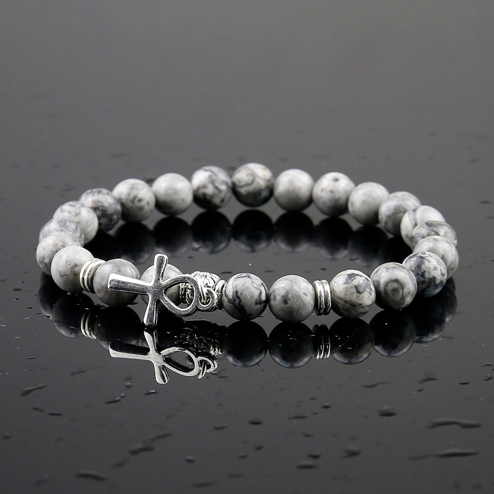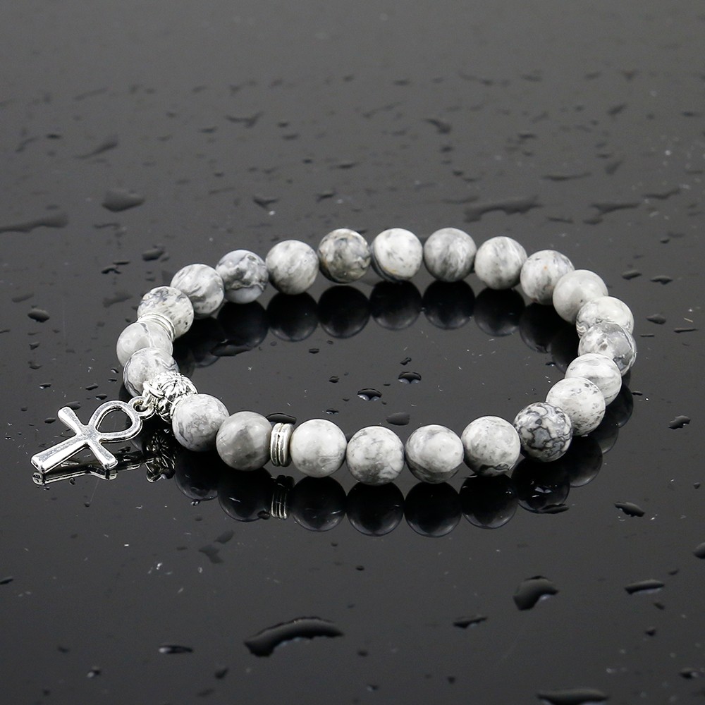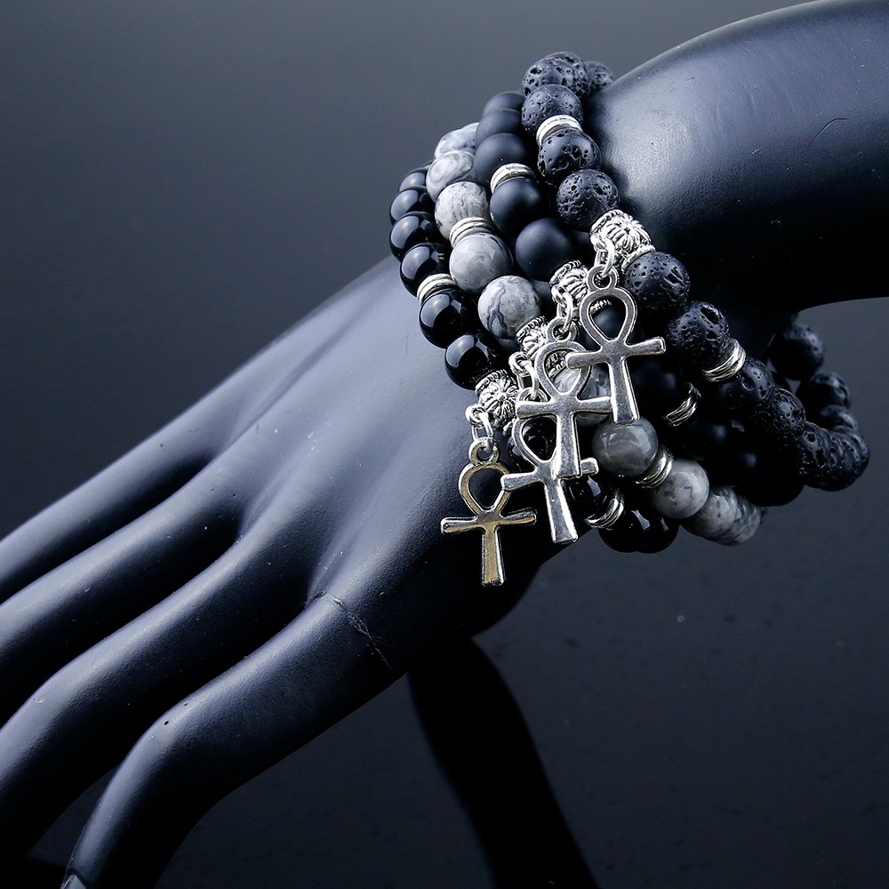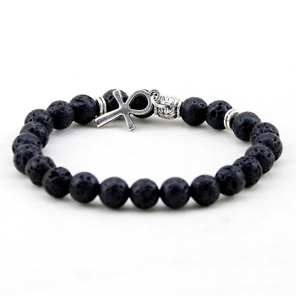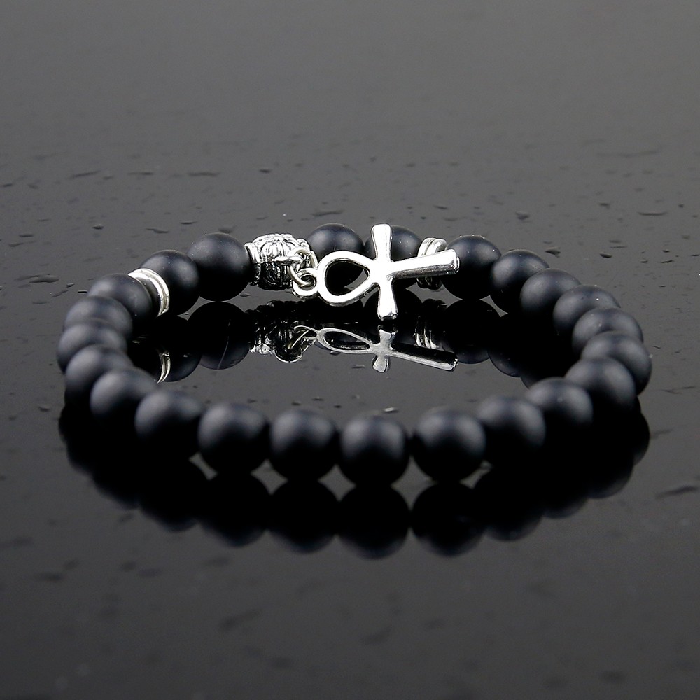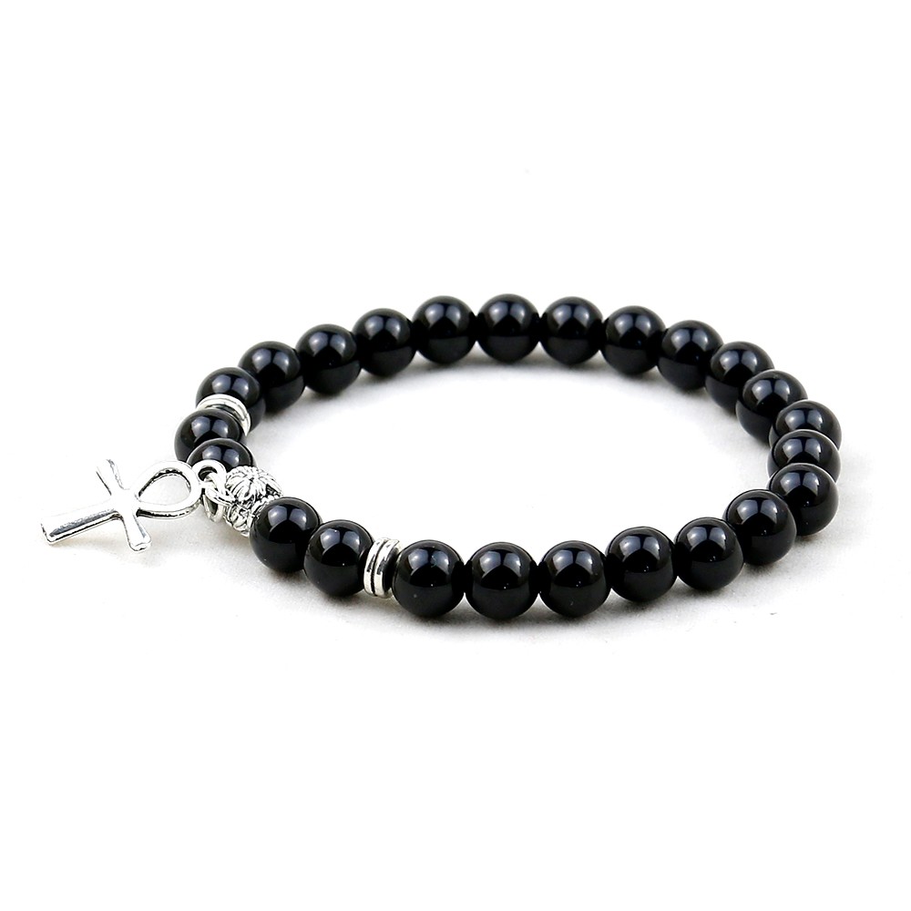 Egyptian Ankh Cross Natural Onyx Stone Bracelet Woman,Jewelry Women Men Egypt Hieroglyphs,Crux Ansata Amulet Gift
