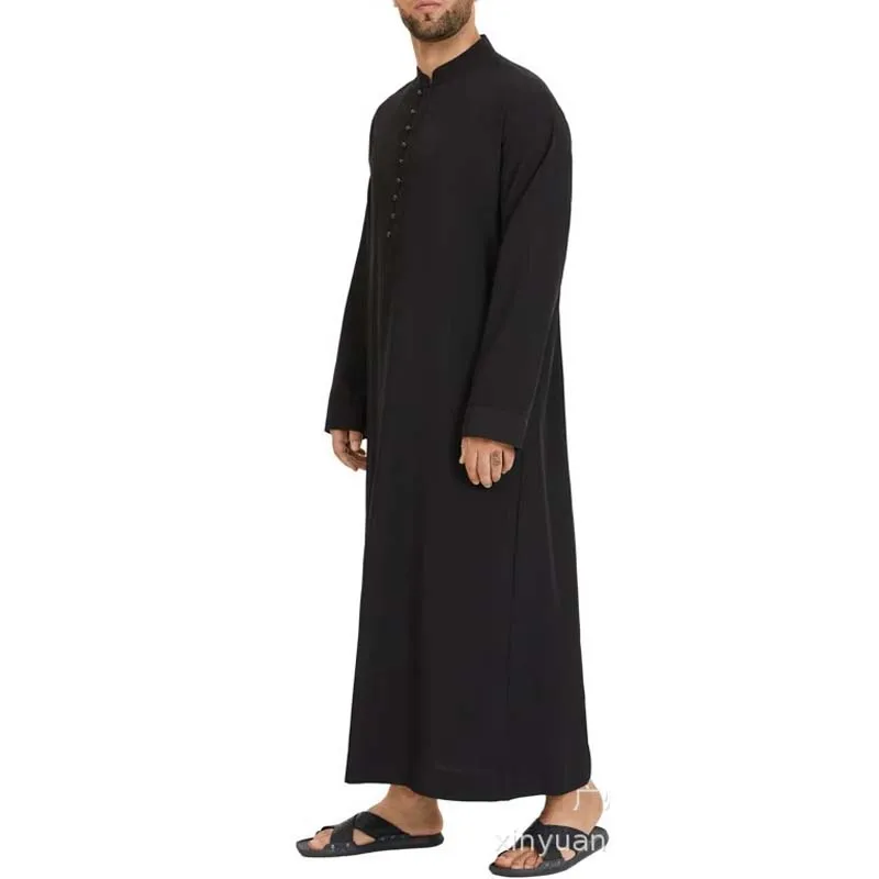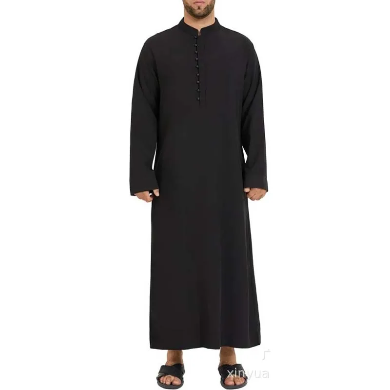 Eid Ramadan Muslim Men Jubba Thobe Saudi Islmaic Clothing Male Prayer Qamis Homme Black White Moroccan Kaftan Long Sleeve Tunics