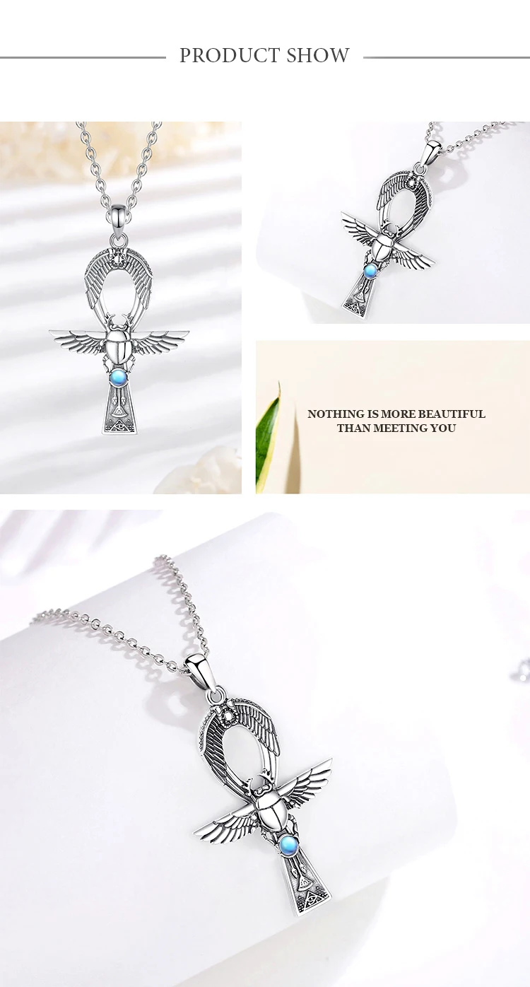 Eudora 925 Sterling Silver Ancient Egyptian Ankh Gigcoil Necklace Moonstone Rune Pendant Men Women Personality Jewelry Gift
