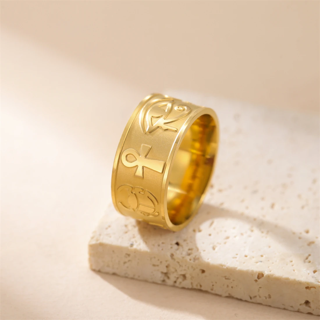 EUEAVAN Mysterious Ancient Egyptian Symbol Ring Stainless Steel Ankh Cross Eye of Horus Sphinx Rings Vintage Amulet Jewelry Gift