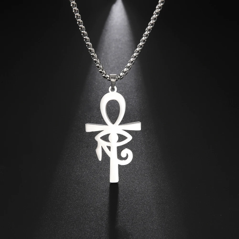 Fashion Egyptian Cross Eye of Horus Pendant Necklace for Men Women Stainless Steel Gold Color Box Chain Necklace Jewelry Gift