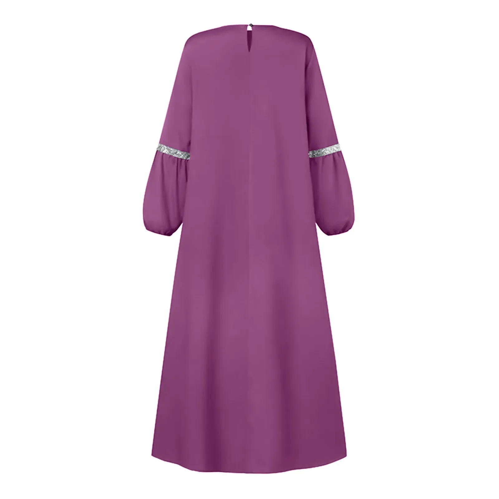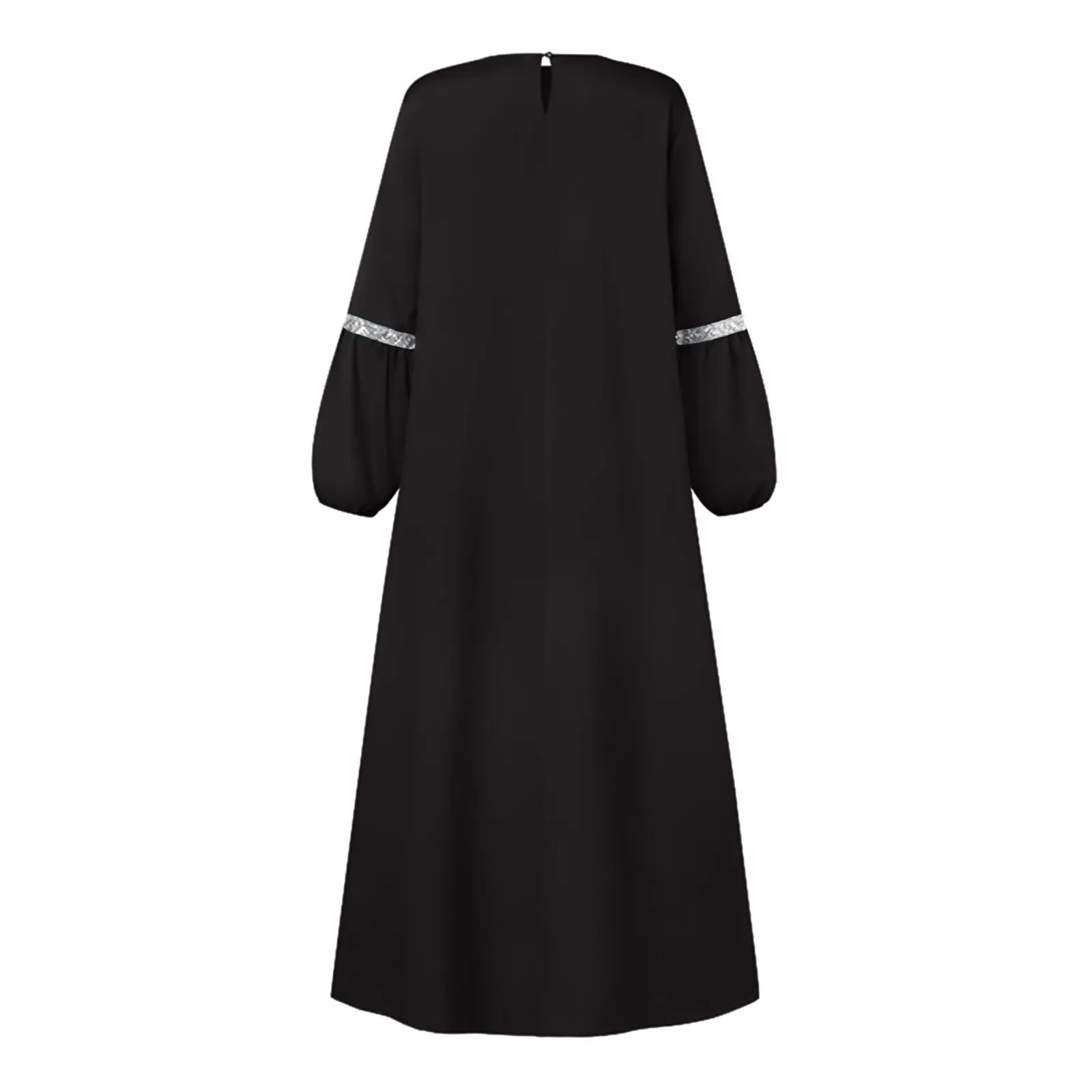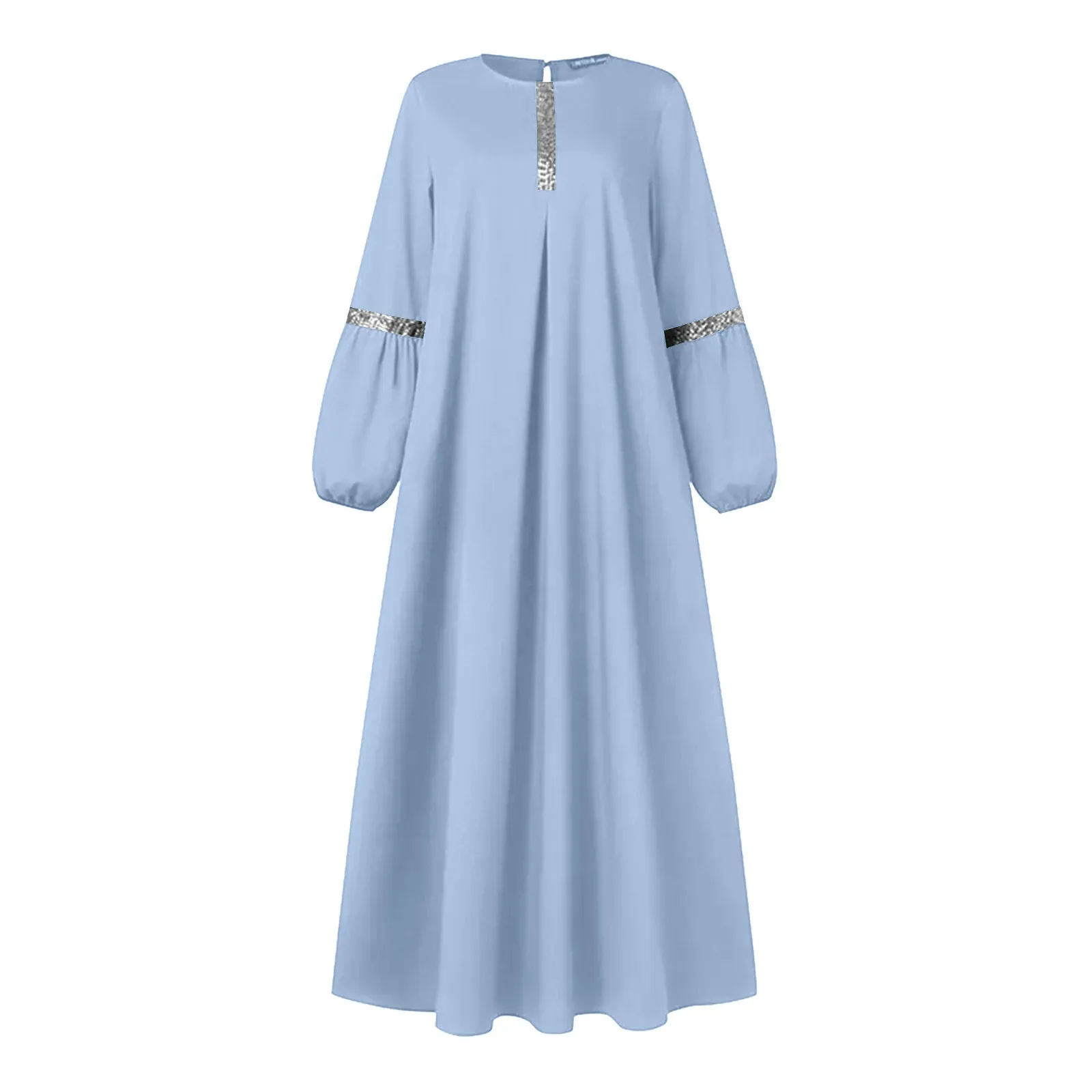 Women’s Muslim Casual Temperament Elegant Solid Color Round Neck Long Sleeve Pleated Dresses