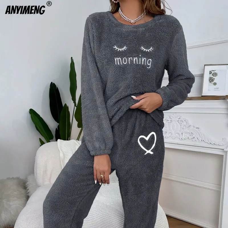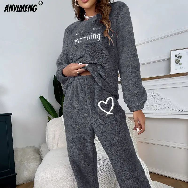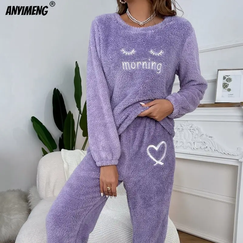 Fluffy Homewear Winter Woman Pajamas Set Pullover Lashes Sleepwear Casual Cozy Flannel Pijamas Cold Thermal Lady Lingerie Pyjama