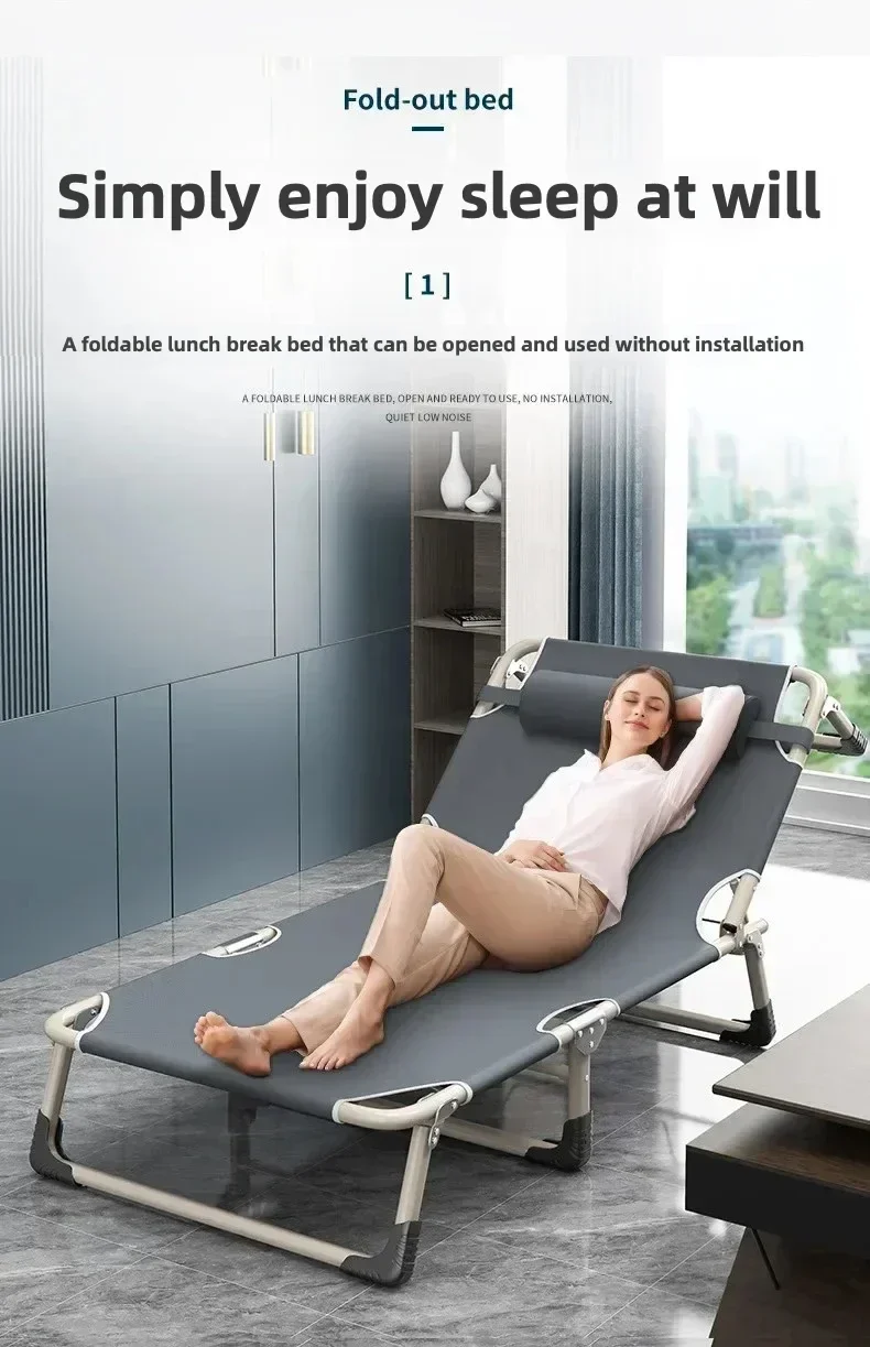 | folding single bed, portable nap cot, camping lounger chair, office nap bed, foldable recliner chair, adjustable sleeping cot, outdoor folding bed, metal frame cot, ergonomic rest chair, multi-use folding bed, heavy-duty nap bed |