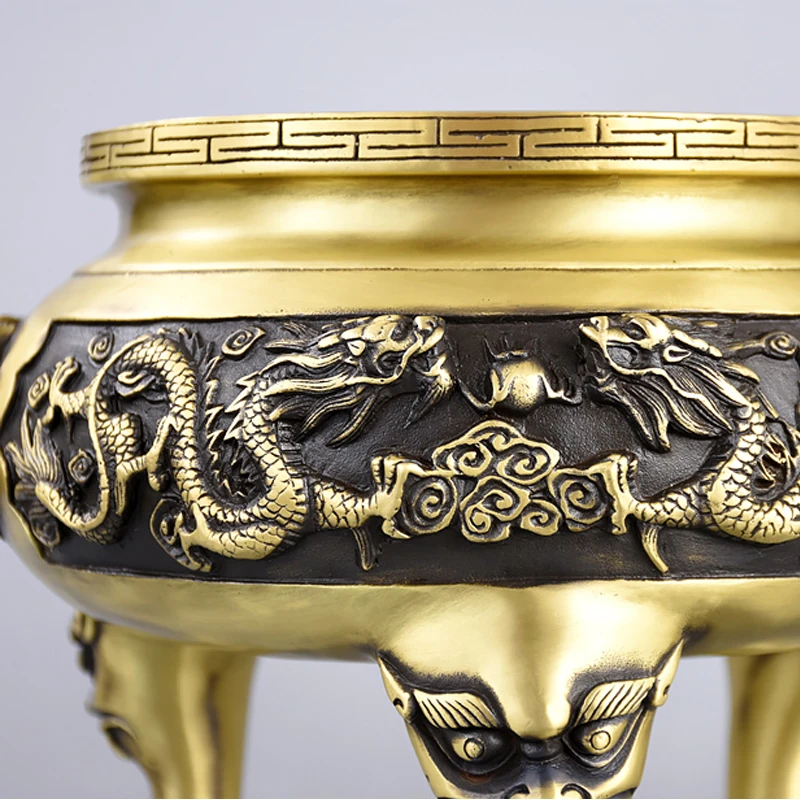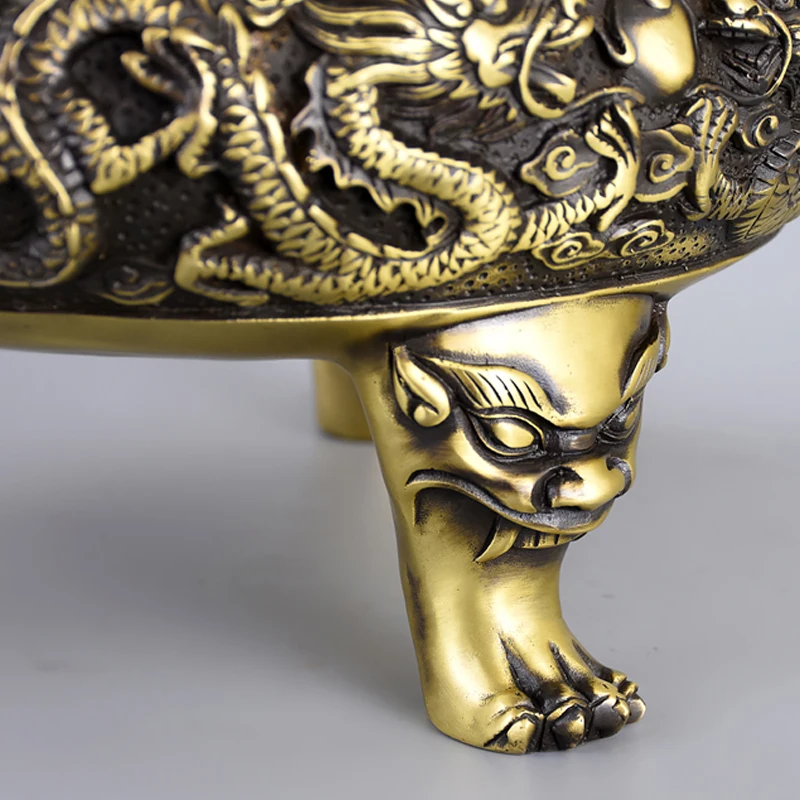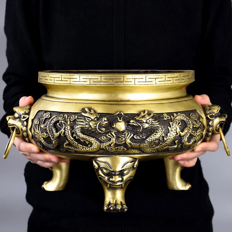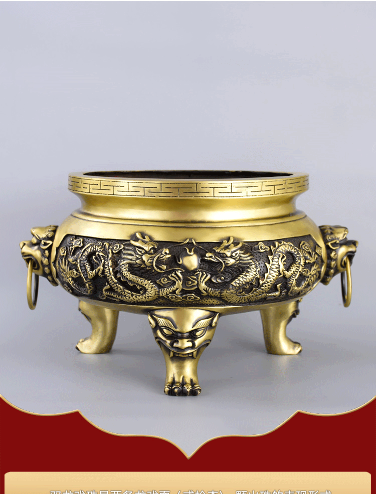 God of Wealth II Dragon Drama Beads Pure Copper Extra Large Lucky Household Incense Burner Buddhist Tools Supplies