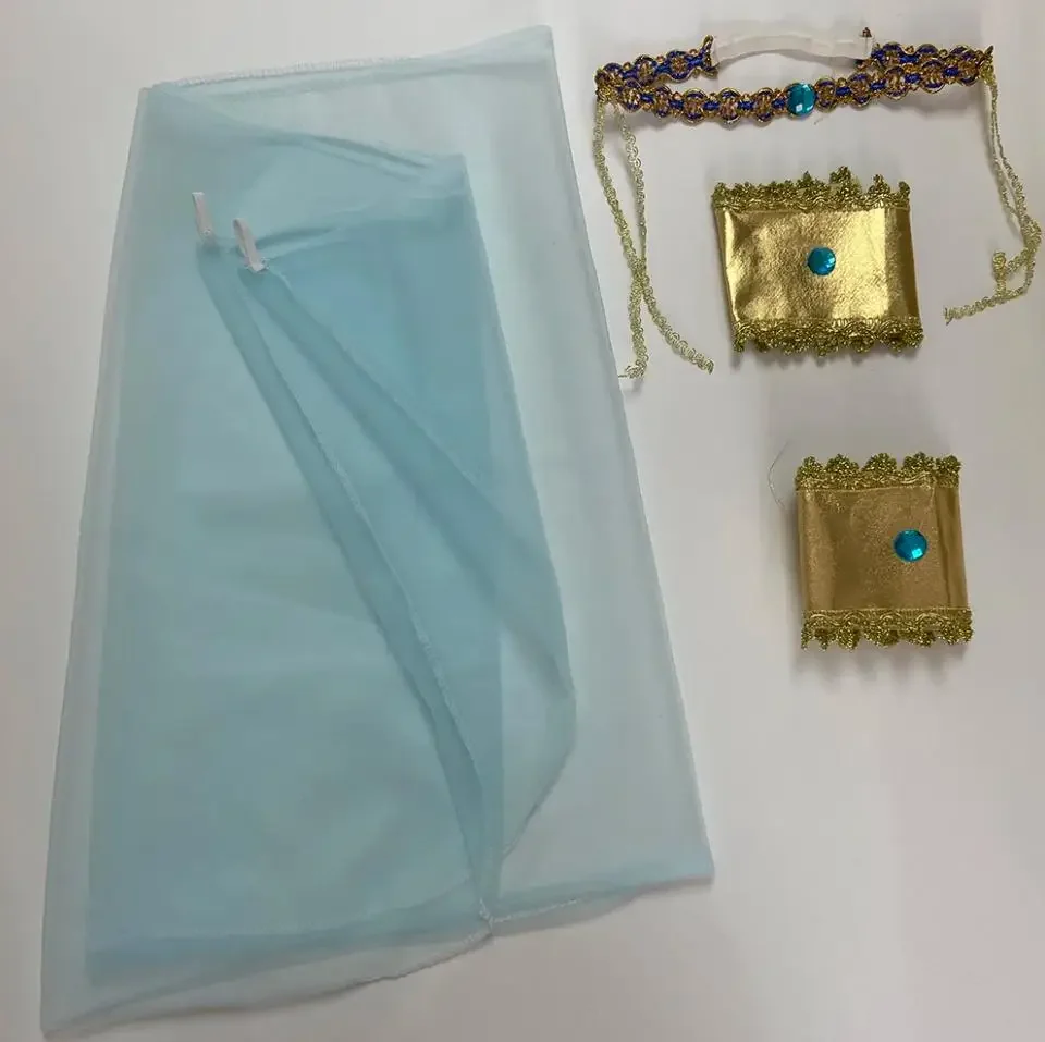 head piece, dress, neck piece, belt, shawl,1 pair wrist bands.