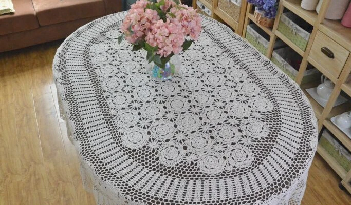 Warning: Trying to access array offset on false in /home/u975142233/domains/kkbazzar.com/public_html/wp-content/plugins/alidswoo/includes/adsw/adsCurrency.php on line 0 Handmade Crochet Table Cloth Oval Dinner Tablecloth Crocheted Lace Cotton Oval table cloth Extra Long Table cover | Khan El Khalili Bazzar