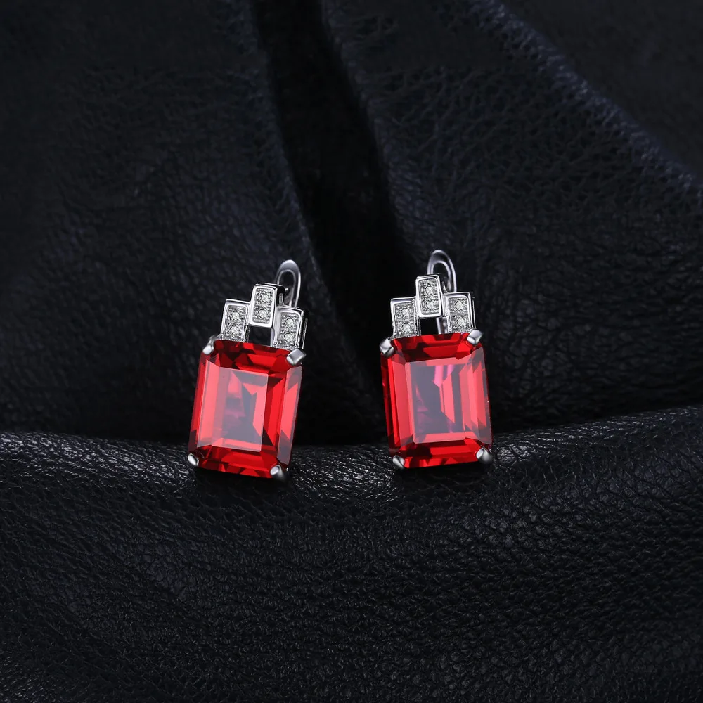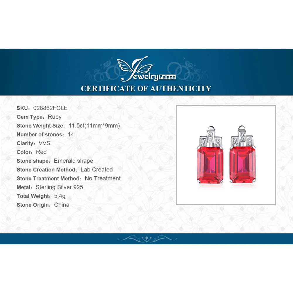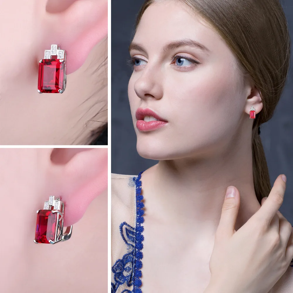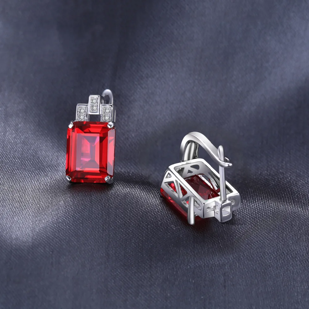 JewelryPalace Luxury 11.5ct Created Red Ruby 925 Sterling Silver Hoop Earrings for Woman Engagement Party Jewelry Fashion Gift