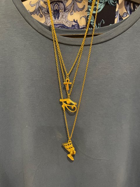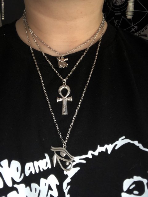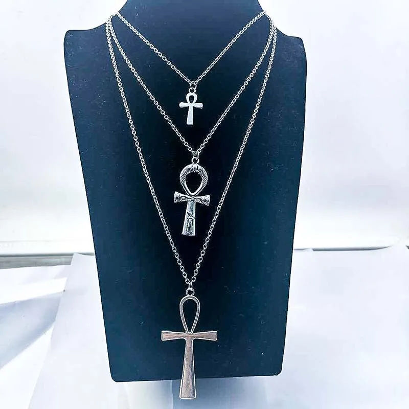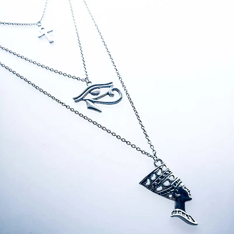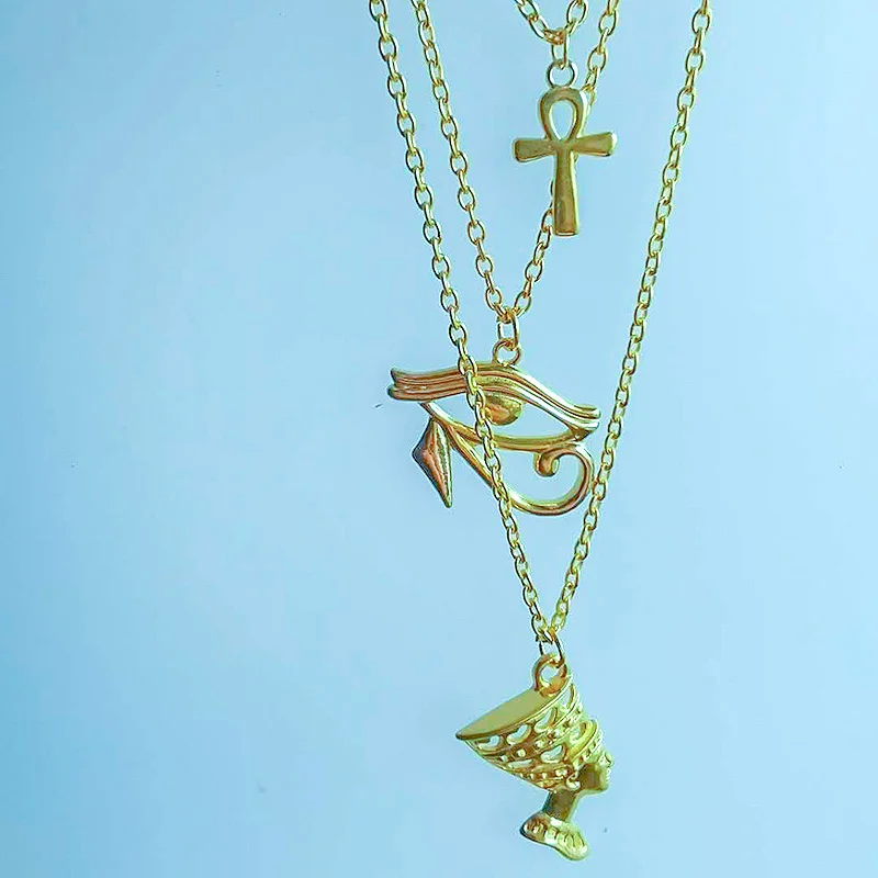 Layered Necklace Women Egypt Eye Of Horus Queen Pharaoh Ankh Cross Pendant Amulet Necklaces African Multilayer Egyptian Jewelry