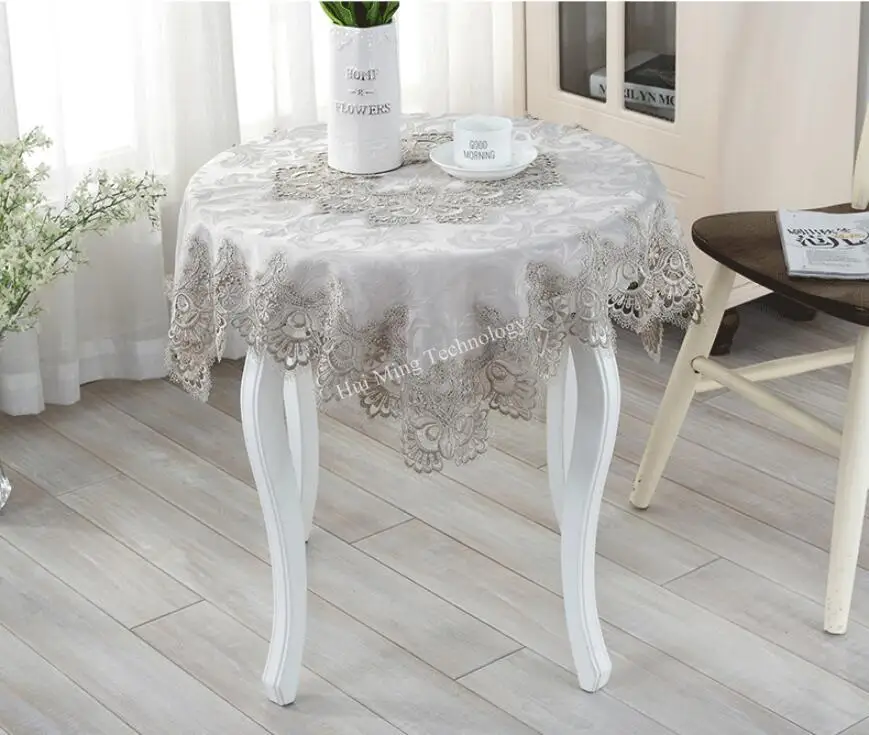 The tablecloth and chair covers are very beautiful. Lace and material are high quality.