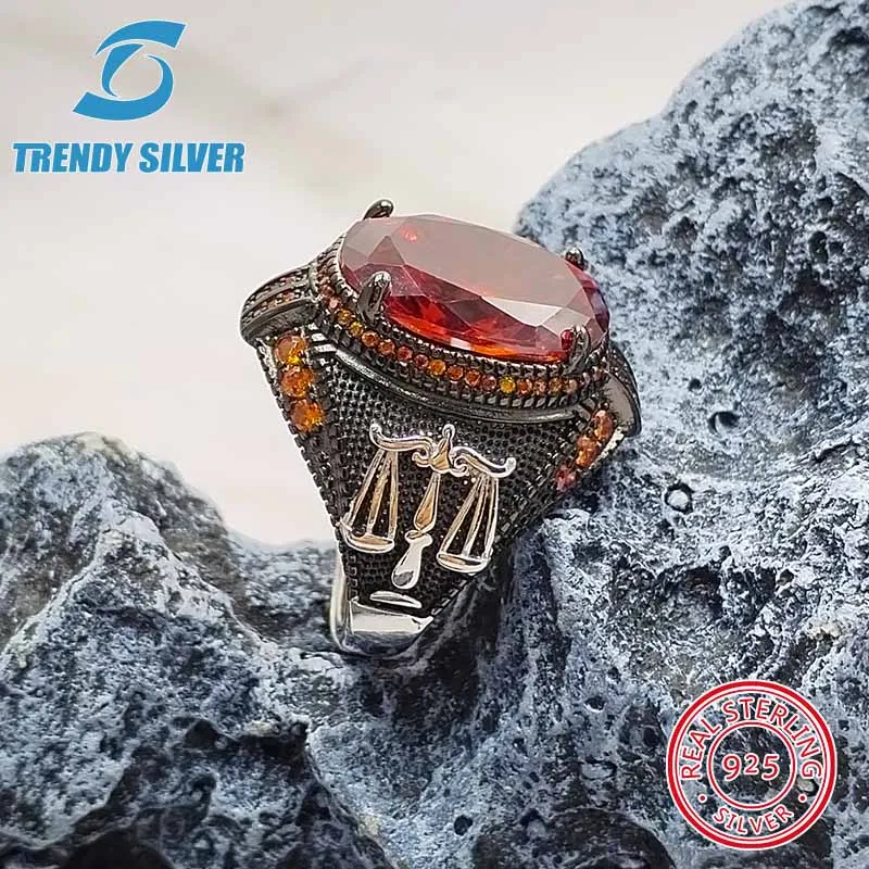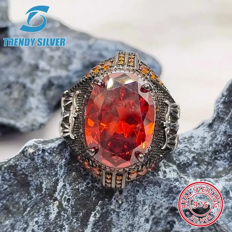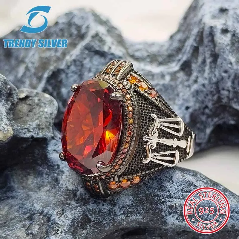Be the first to review “luxury Mens Man rings real 925 sterling silver certified original jewelry for men RED stone ring male”