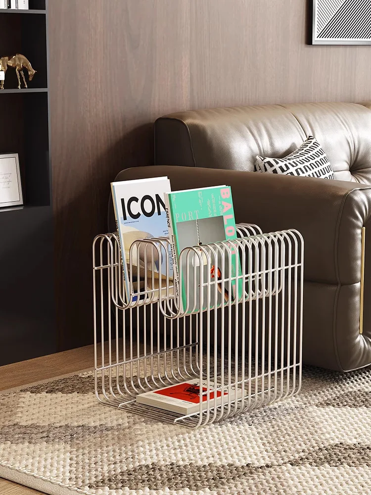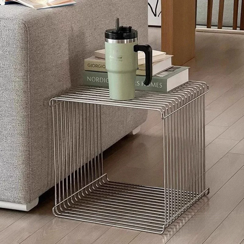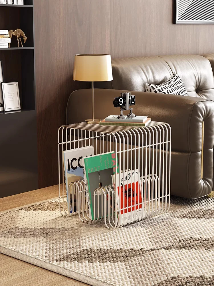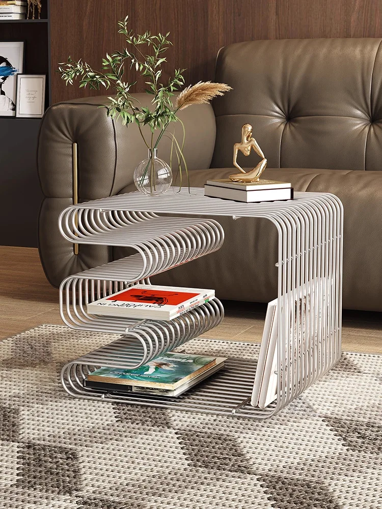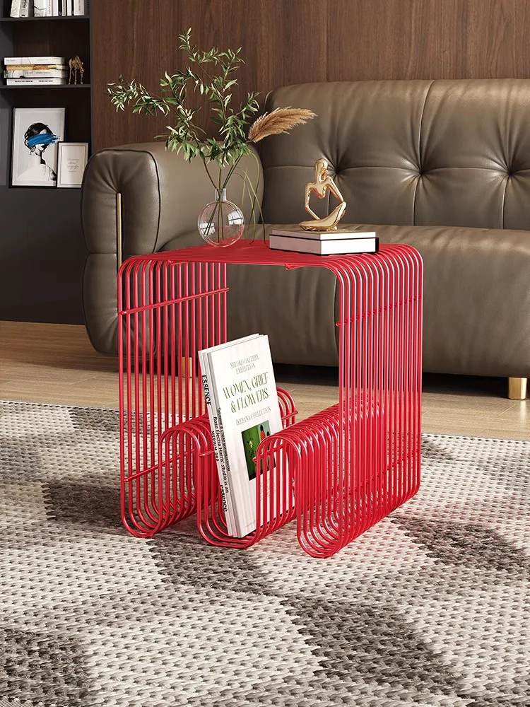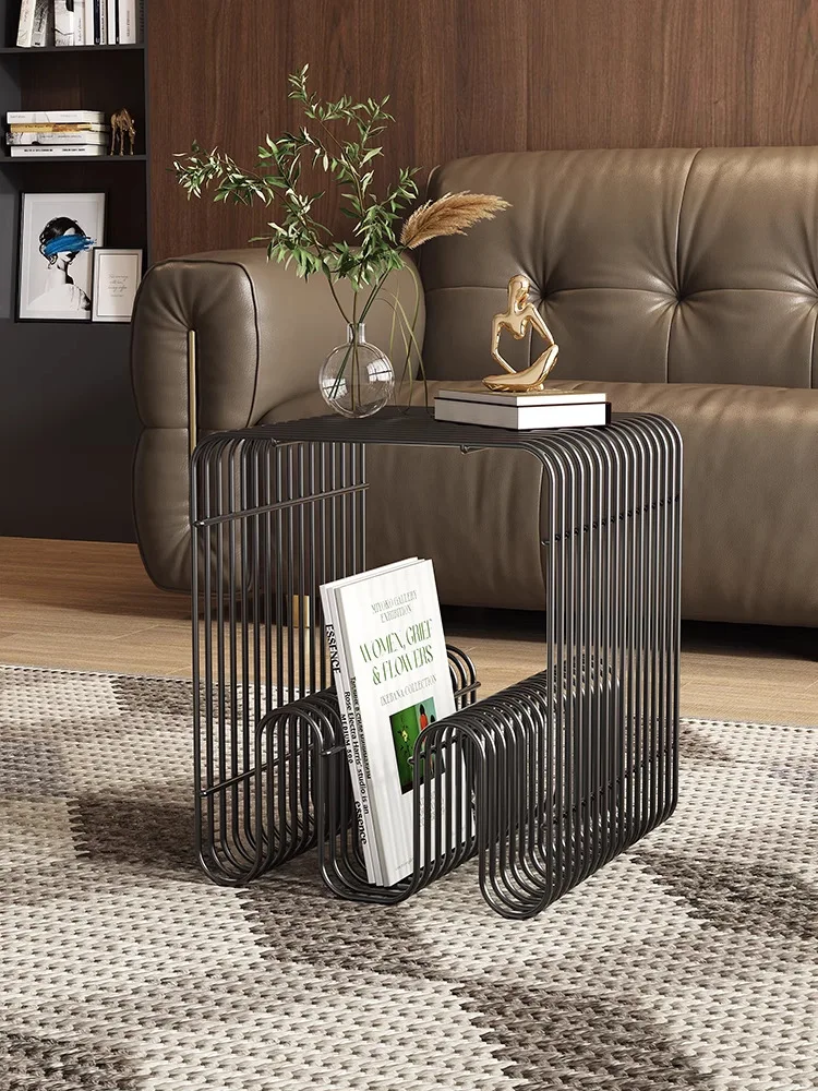 Metal Line Coffee Bedside Storage Bookshelf Wall Hanging Shelf Floor Small Sofa Edge Table Organizer Modern Minimalist Design