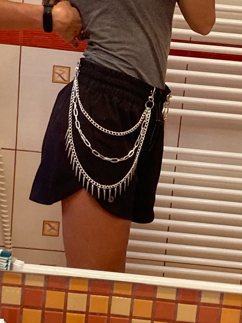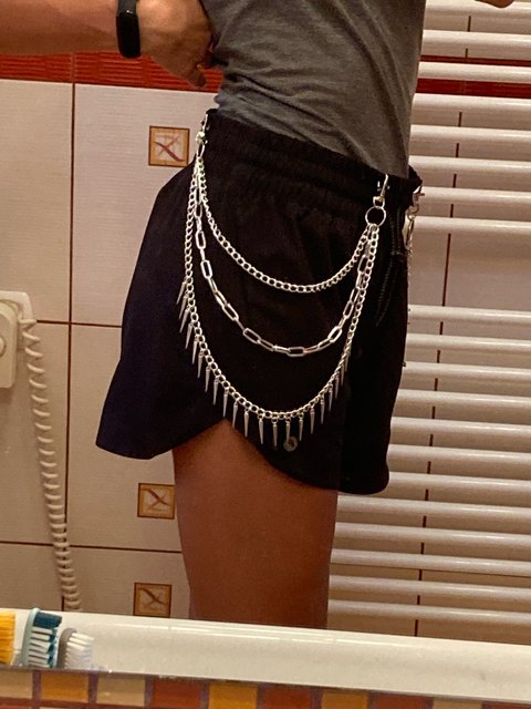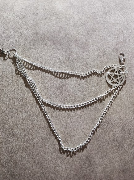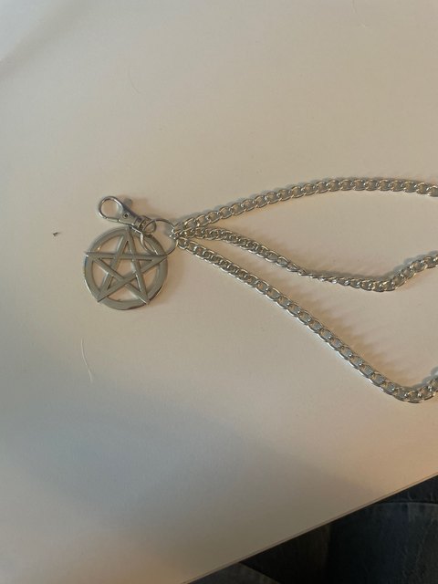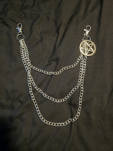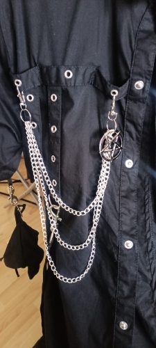 I like these chains! they hang a good bit down and are visible when wearing longer shirts, shipping was good, very happy with this, the pentagram makes it stick out too. I will be buying from here again 🖤
