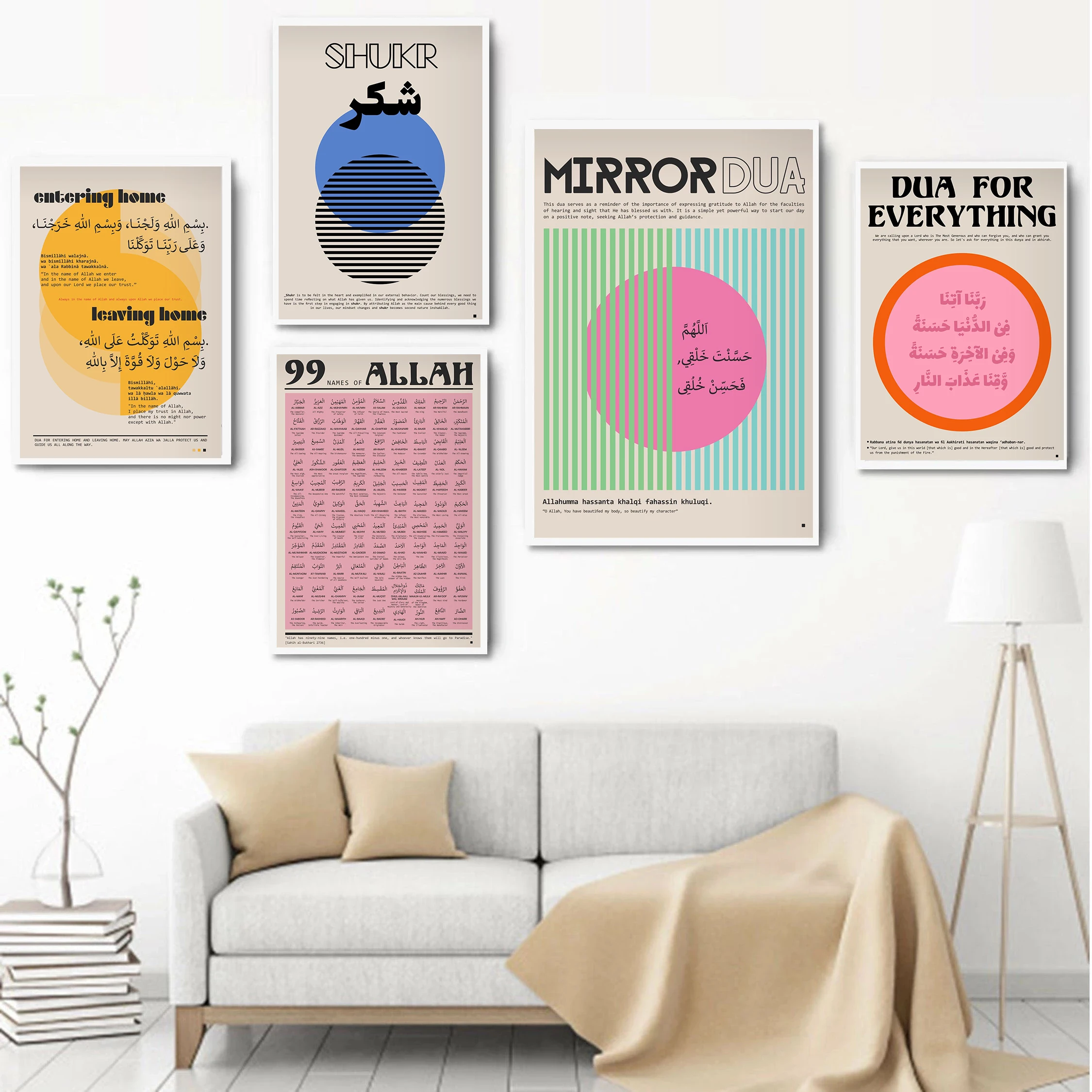 Retro Bauhaus Posters Islamic Prints Arabic Calligraphy Quran 99 Names of Allah Canvas Painting Wall Art Picture Home Room Decor