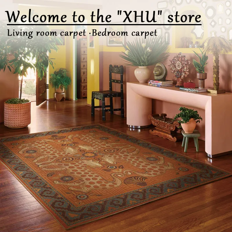 Retro Ethnic Style Living Room Oversized Carpet Abstract Leopard Animal Bedroom Bedside Carpet Geometric Pattern Brown Rug Ковер