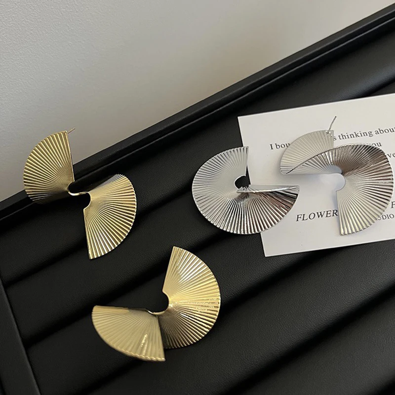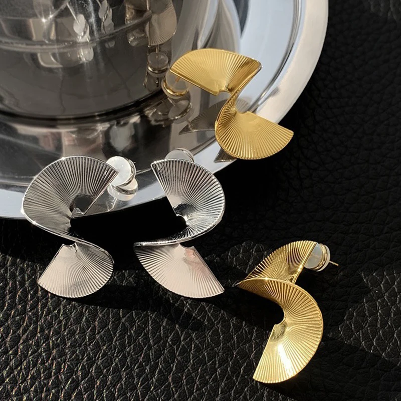 Retro Twisted Spiral Statement Earrings for Women Party Wedding Temperament Jewelry Geometry Golden Silver Color Metal Earrings