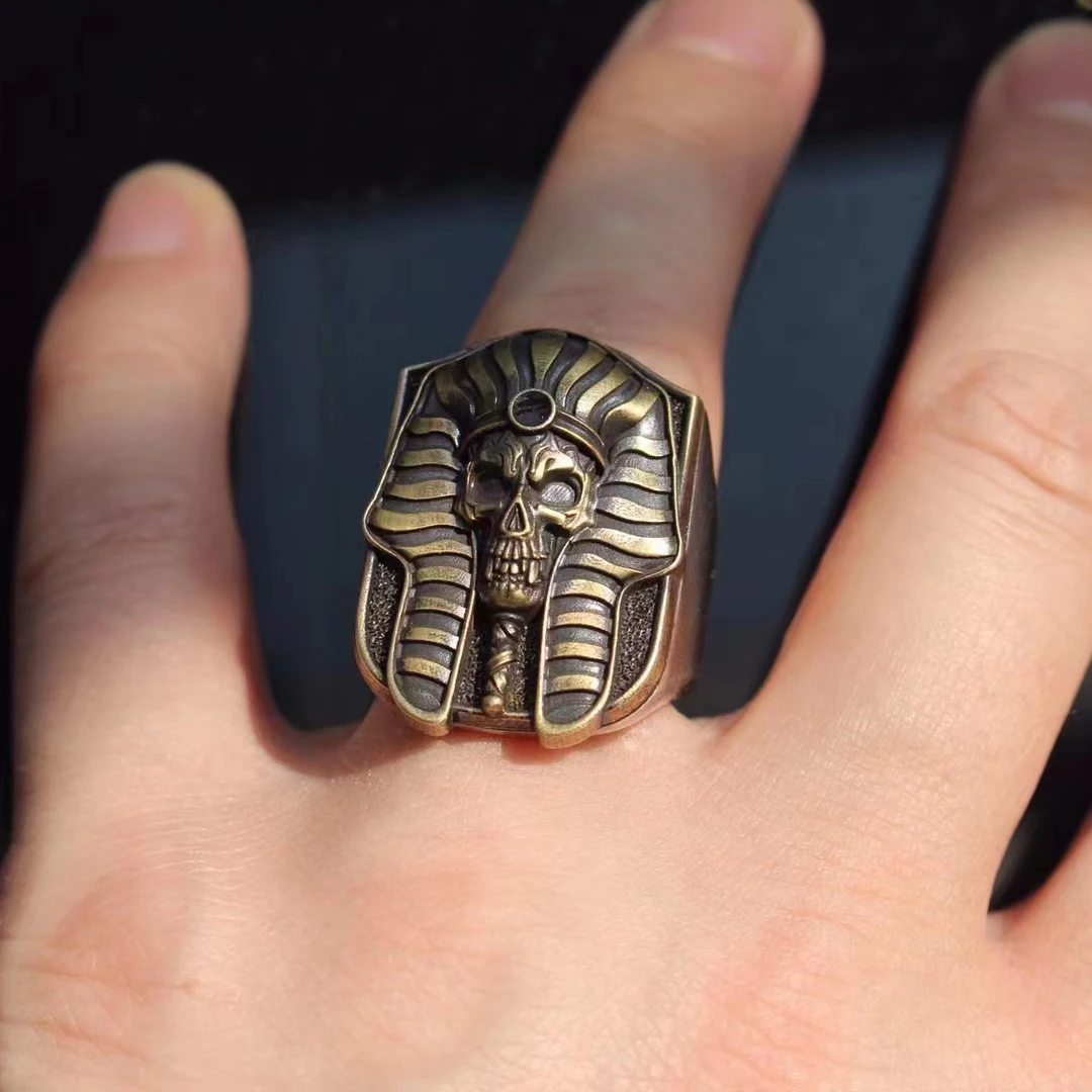 S925 Silver Do Old Craft Egyptian Pharaoh Men’s Silver Ring