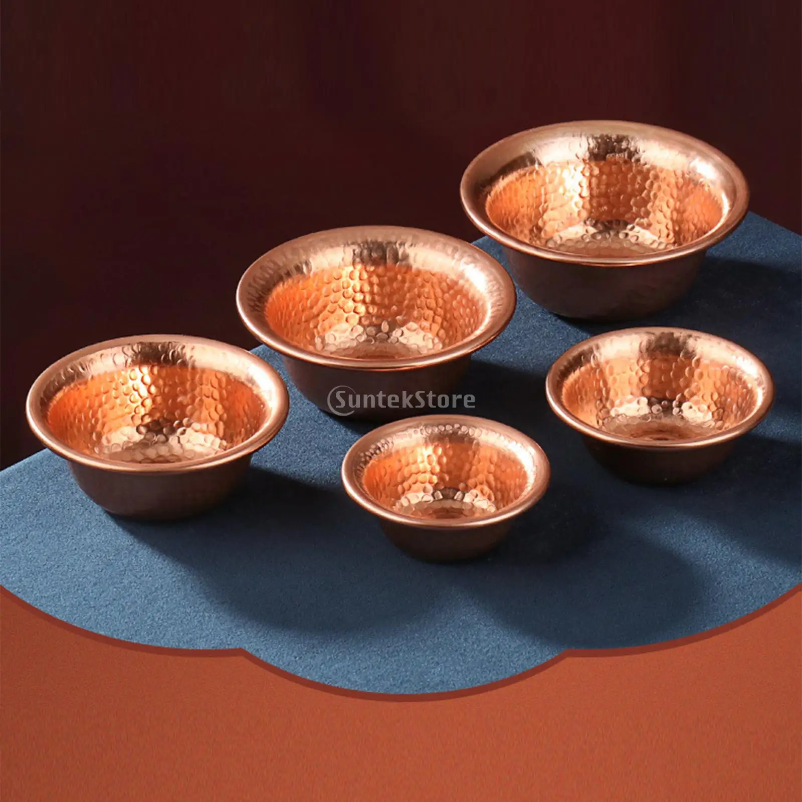 Small Copper Bowl Tabletop Decor Altar Supplies Pet Food Bowls Ornament for Meditation Rituals Sacrifices Home Kitchen Temple