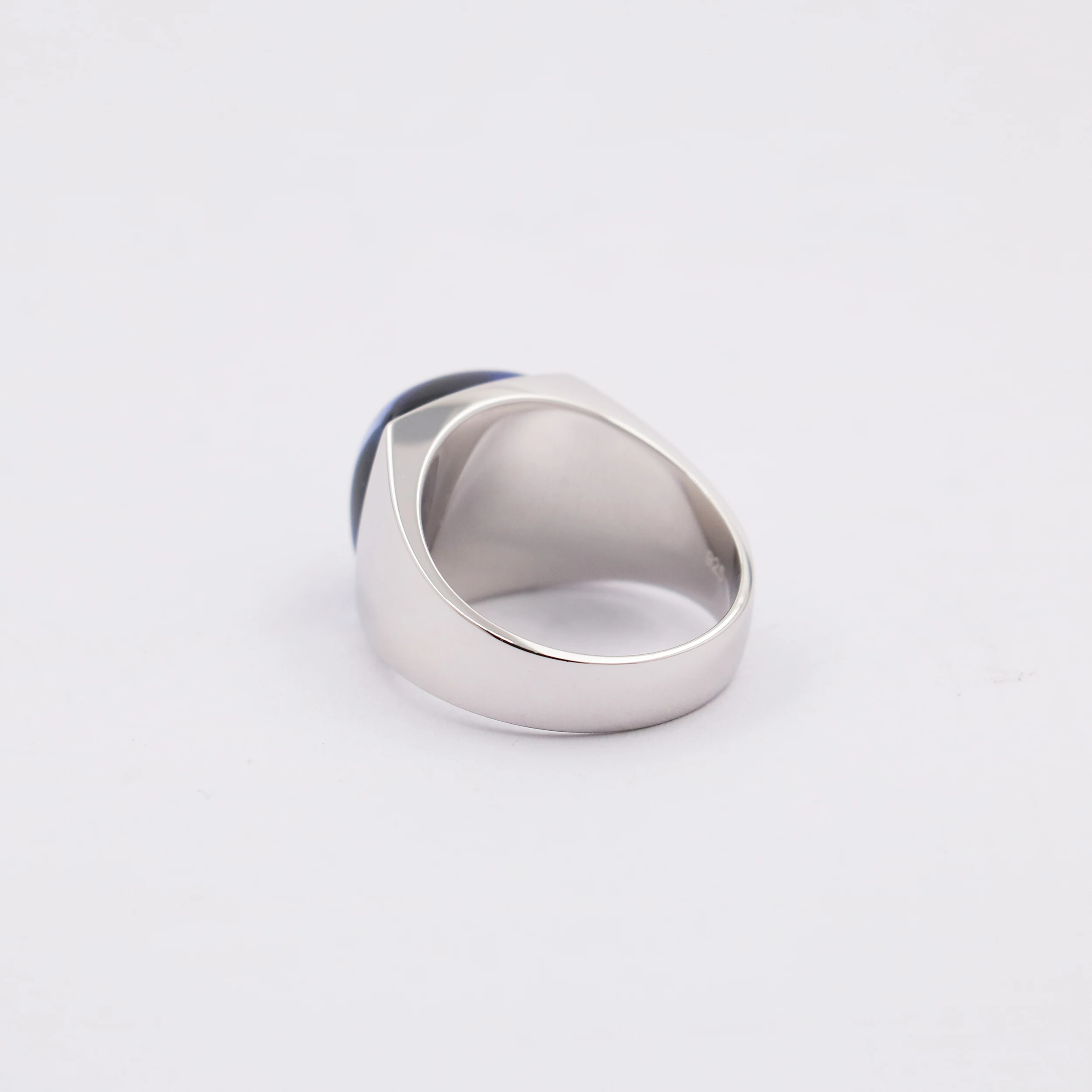 This item was made by genuine 925 sterling silver and high quality lab sapphire. ring top width is around 14 mm and the bottom band width is around 4 mm.