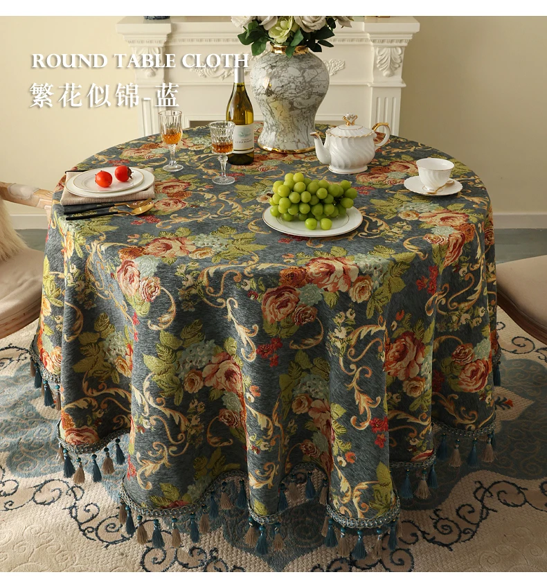 Tassel Tablecloth Round Chenille Dining Tables Cloth Home Decoration Jacquard Embroidery Flower European Coffee Table Cover