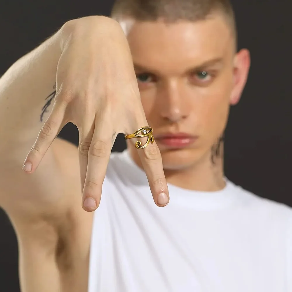 Protection Ring – eye of horus design signet ring, retro fashion look.