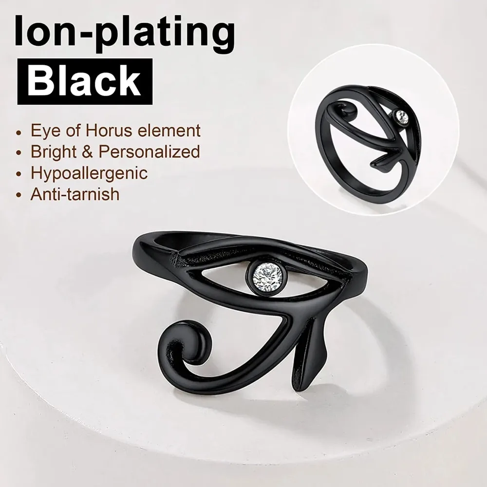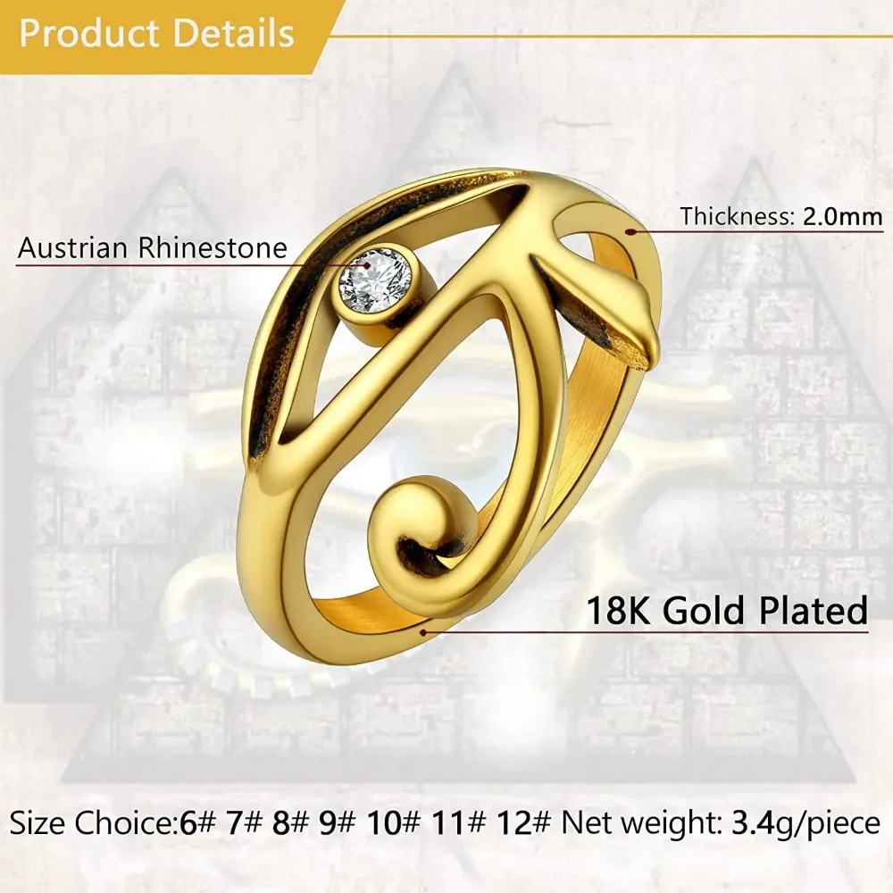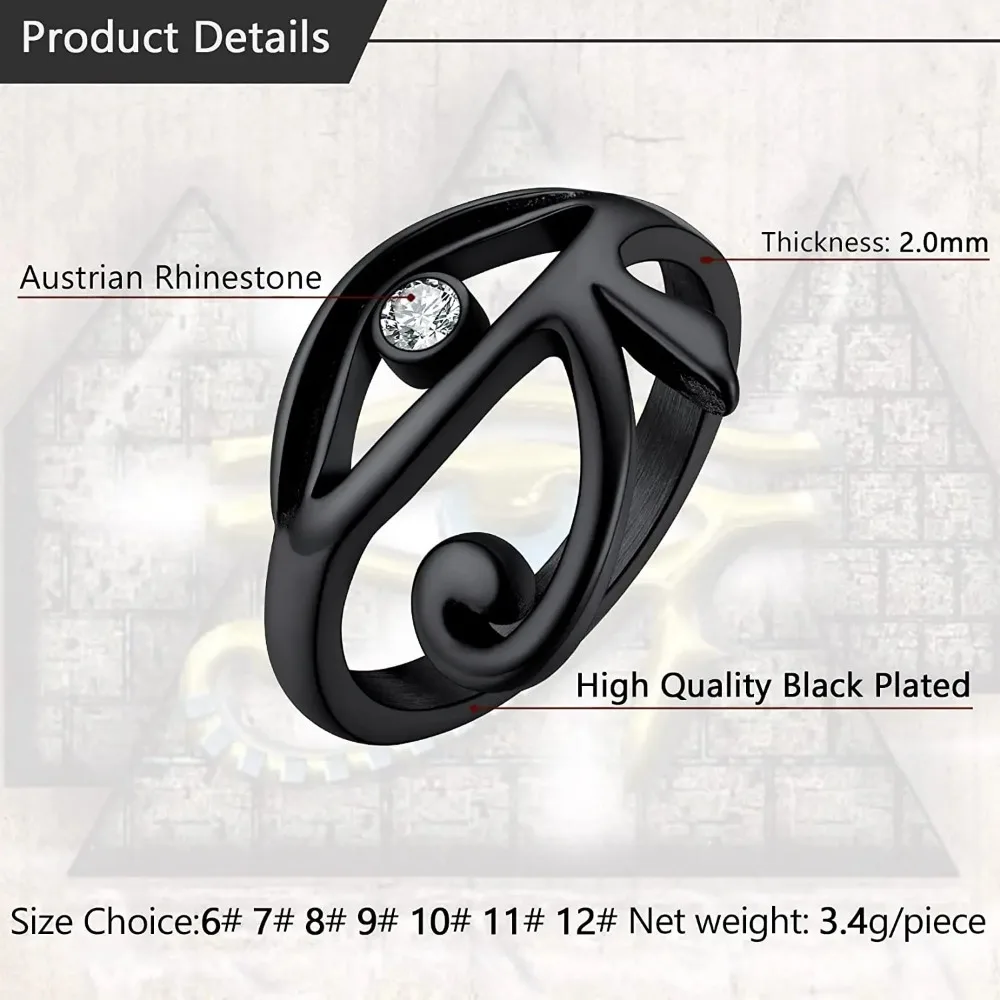 U7 CZ Stainless Steel Eye of Horus Ring Black Gold Color Ancient Egyptian Protection Amulet Jewelry Mens Signet Size 7 To 14