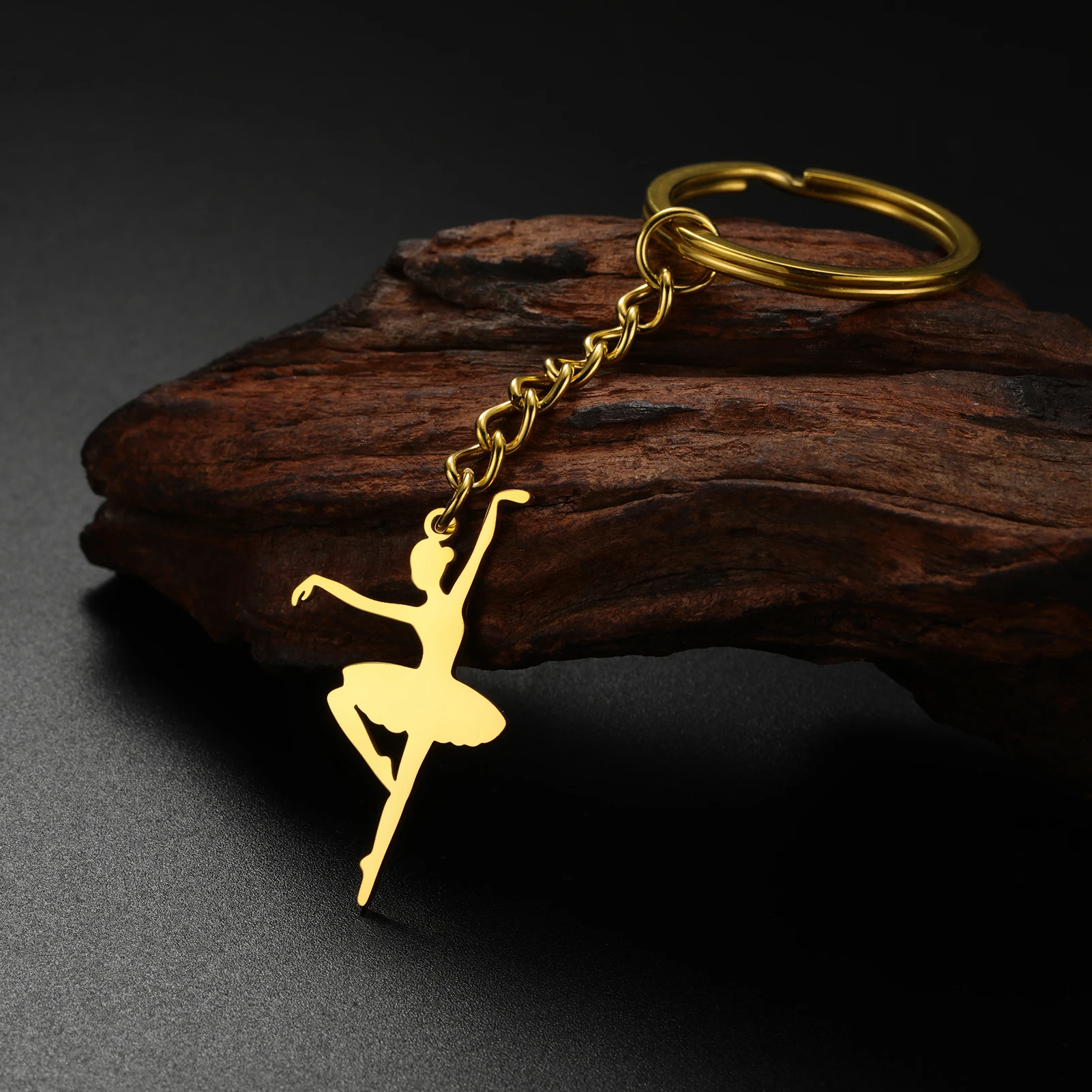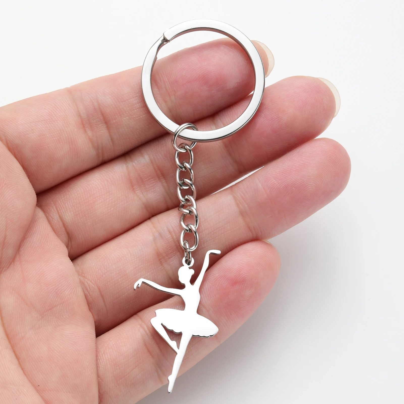 Unift Elegant Ballet Dancer Ballerina Charms Keychain Stainless Steel Keyring Trendy Jewelry Bag Accessories for Daughter Gift