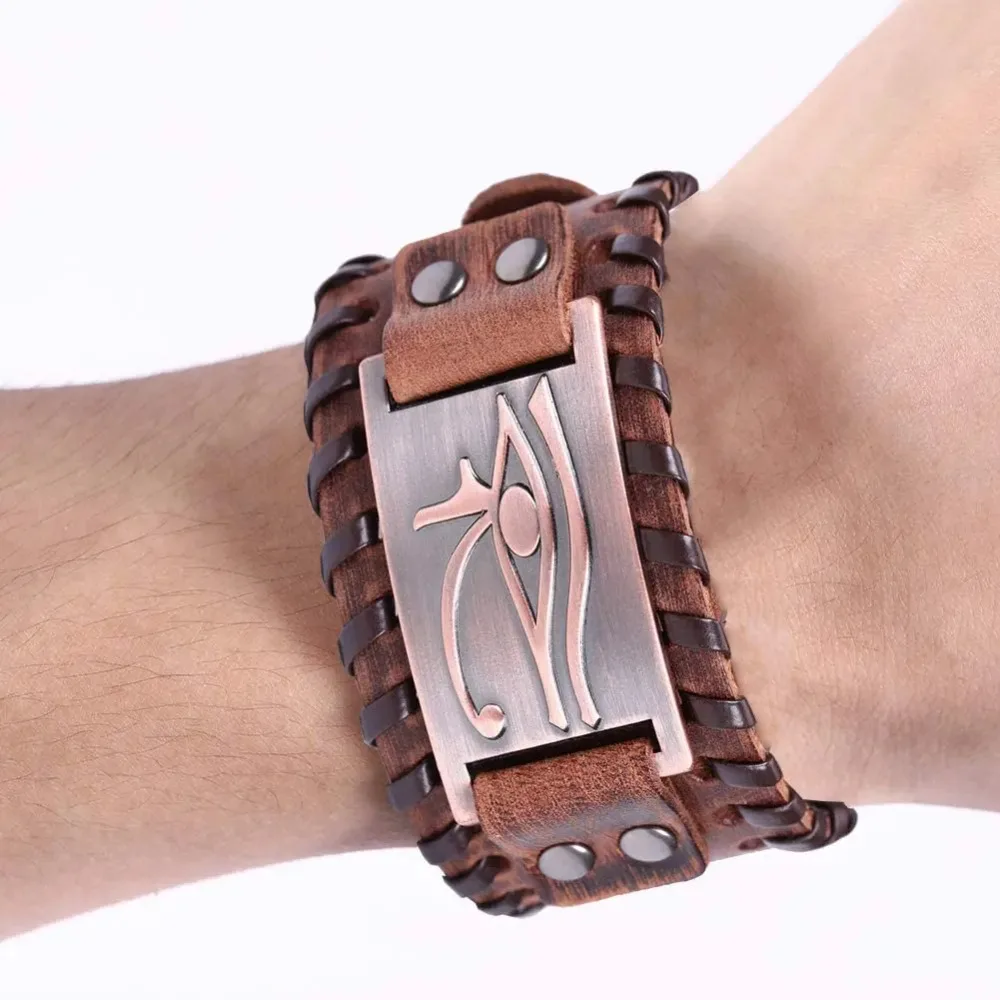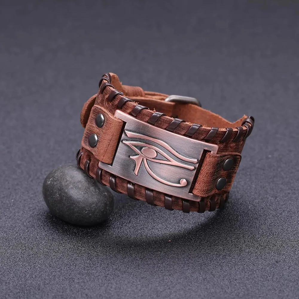 Vintage Amulet Eye of Horus Leather Bracelet for Men Cuff Bangle Egyptian Talisman Pagan Male Jewelry