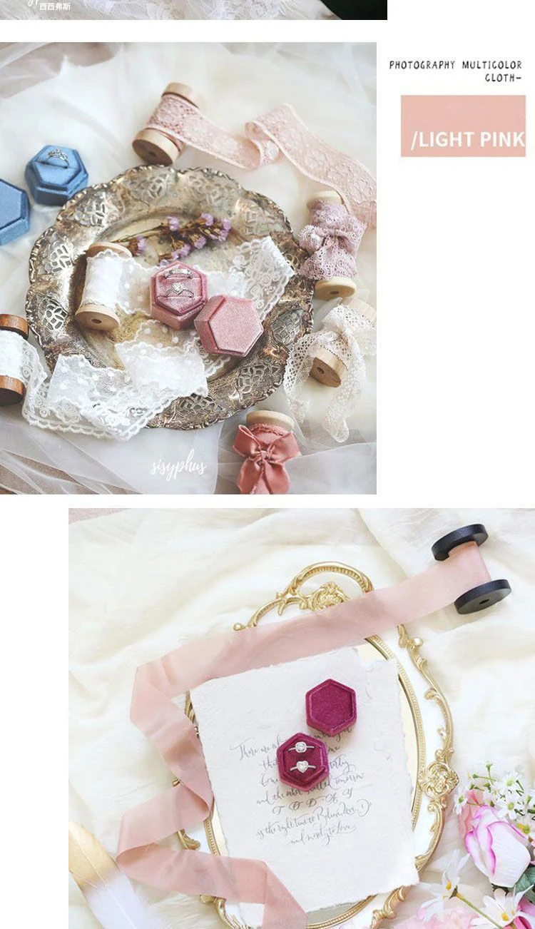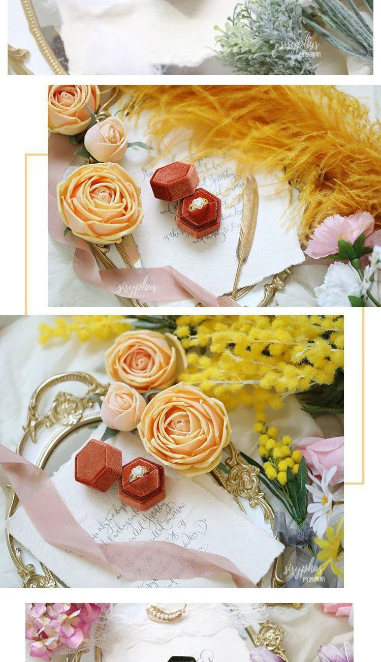 Vintage Hexagon Velvet Jewelry Double Ring Box Empty Case Holder for Engagement Wedding Ceremony Valentines Day Organizer 2028